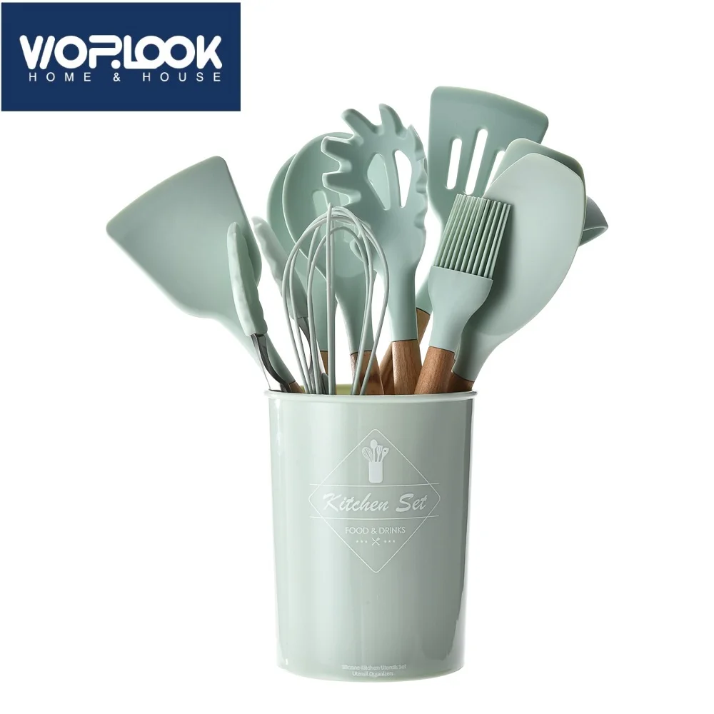 Деревянная силиконовая кухонная утварь, антипригарная кухонная утва...