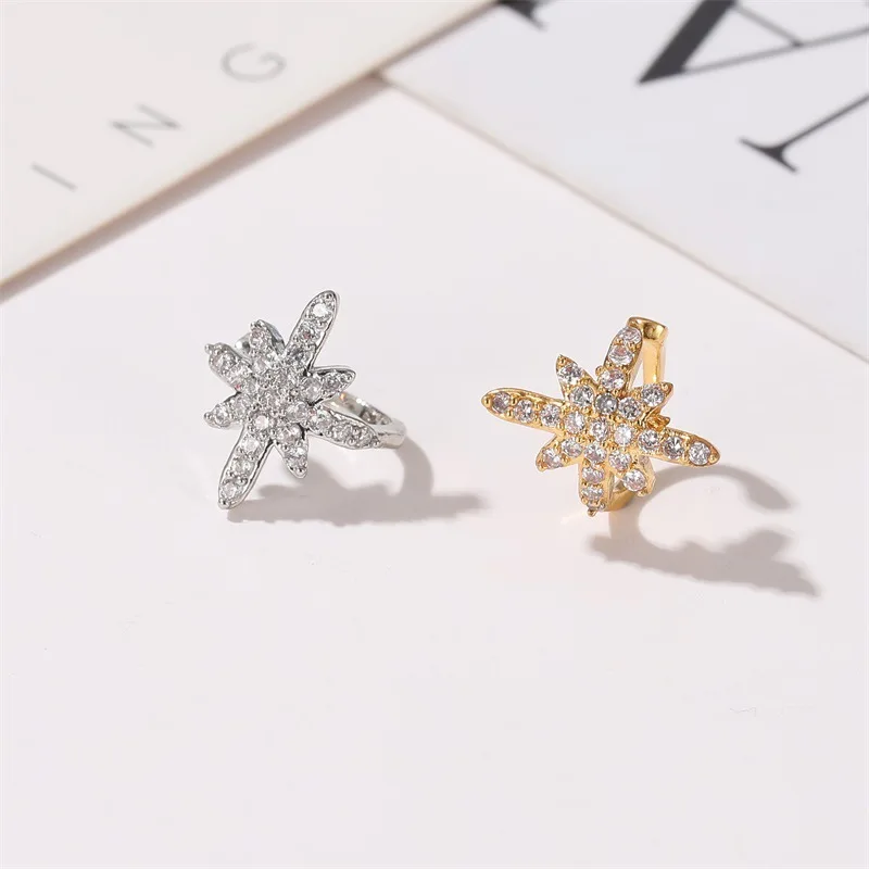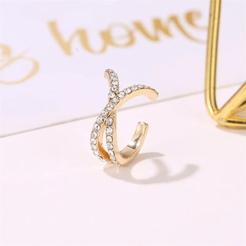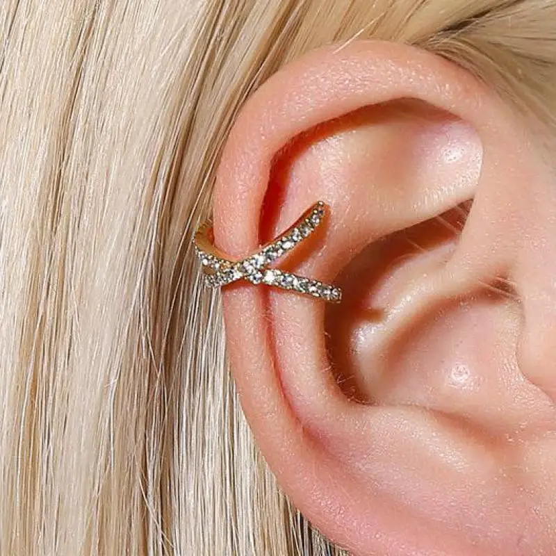 Циркониевый зажим серьги геометрической формы в форме Креста для женщин с украшением в виде кристаллов; Цвет золотистый, серебристый Цвет колошения ювелирные изделия без отверстия для ушей нужен Ушная клипса