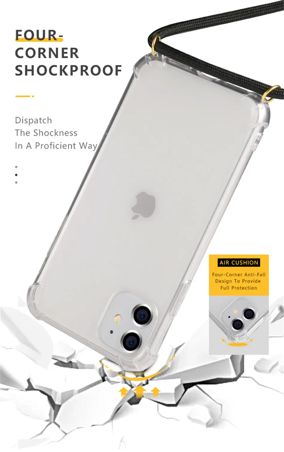 Чехол для iPhone 11, ожерелье, ремешок на плечо, шнур, прозрачный м...