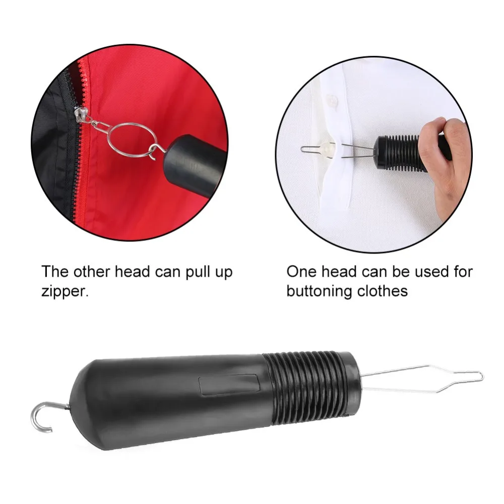 Двойной дизайн, один из них-петля, которая может пройти через отверстие кнопки и крючки вокруг, чтобы вытащить его. Другой крючок для подтягивания молнии. Это помогает людям, которым трудно надевать одежду, такую как артрит, боль в суставах и т. Д. Изготовлен из высококачественного материала, прочный для длительного использования.