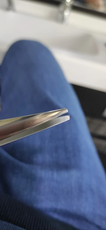 Дон ножницы a pass! Они обрезали идеально, сталь хорошего качества, они прибыли очень быстро в кратчайшие сроки, они были очень хорошо упакованы. Единственное, что я могу уточнить, если вы не оценили это хорошо на фотографиях, кончик ножниц довольно широкий около 5 мм.