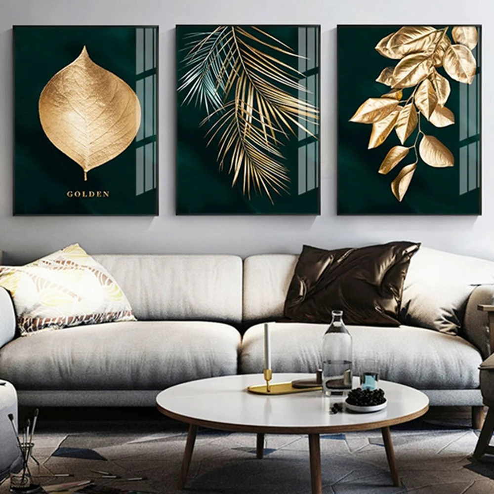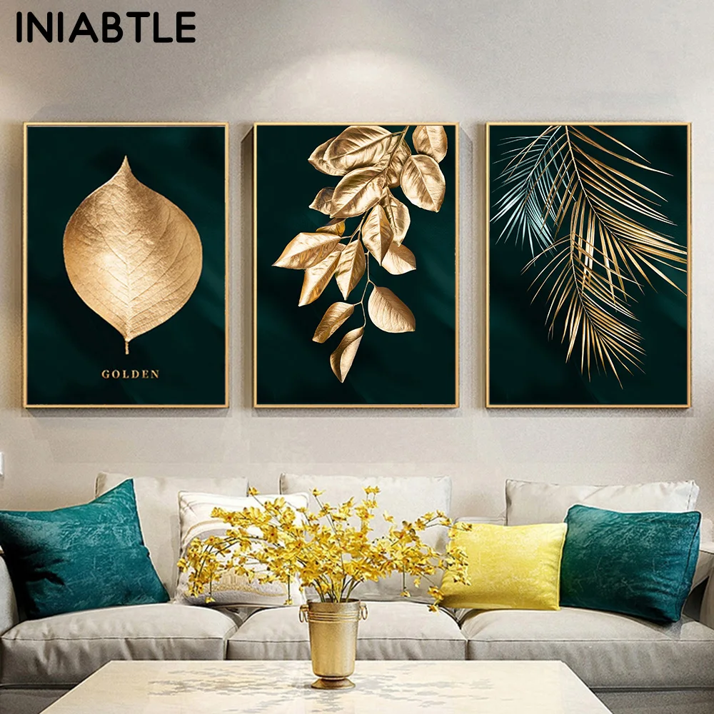 Абстрактные плакаты на стену с изображением золотых растений, Листьев, современный стиль, холст, художественное украшение, картины для гостиной, домашний декор