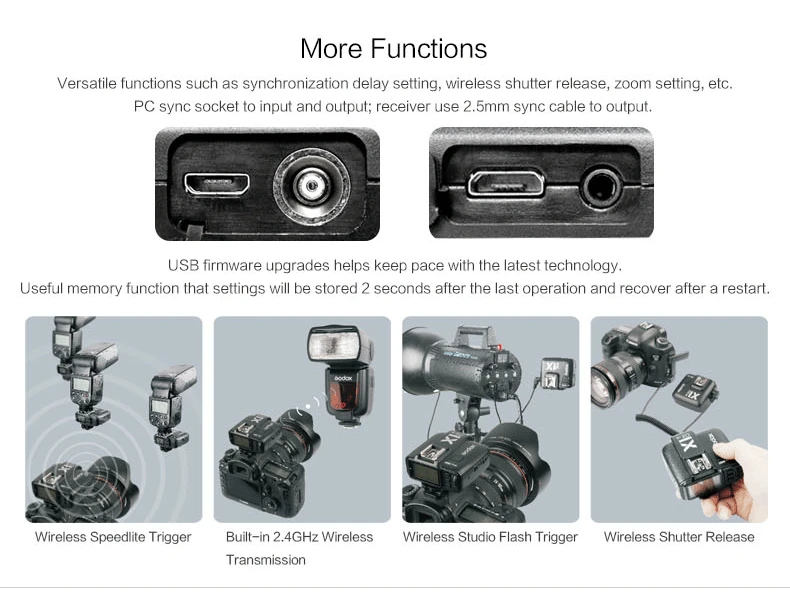 1/8000s достигается, когда камера имеет максимальную скорость затвора камеры 1/8000s. Тип: для Nikon Совместимость с: для цифровых зеркальных камер Canon (i-TTL autoflash); Поддержка всех камер с разъемом для синхронизации ПК Встроенная система дистанционного управления: Беспроводная передача 2,4G Метод модуляции: MSK Источник питания: 2 * батарейки типа АА (не входят в комплект)