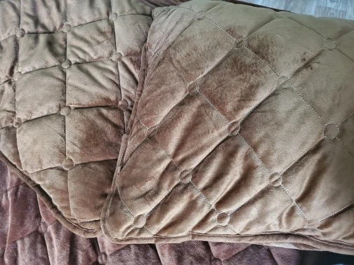Продавец общительный, все рассказал, подсказал. Заказ изготовили по моим меркам. В течение трех дней все отшили и отправили. Сам товар качественный, строчки ровные, ниточки не торчат. Похоже на плюш, ворс короткий. Ткань не линяет, цвет немного темнее, у продавца более красный, пришёл насыщенный винный, очень красивый. Прошито все белой ниткой, но вид не портит. Считаю что цена чуть завышена, но за корректное общение, ответы на все вопросы, скорость отправки можно чуть доплатить.