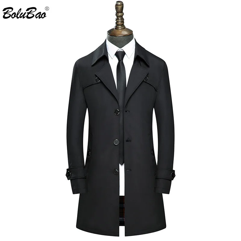 Мужской длинный Тренч BOLUBAO, приталенный ветрозащитный деловой Тренч в официальном стиле, одежда для мужчин