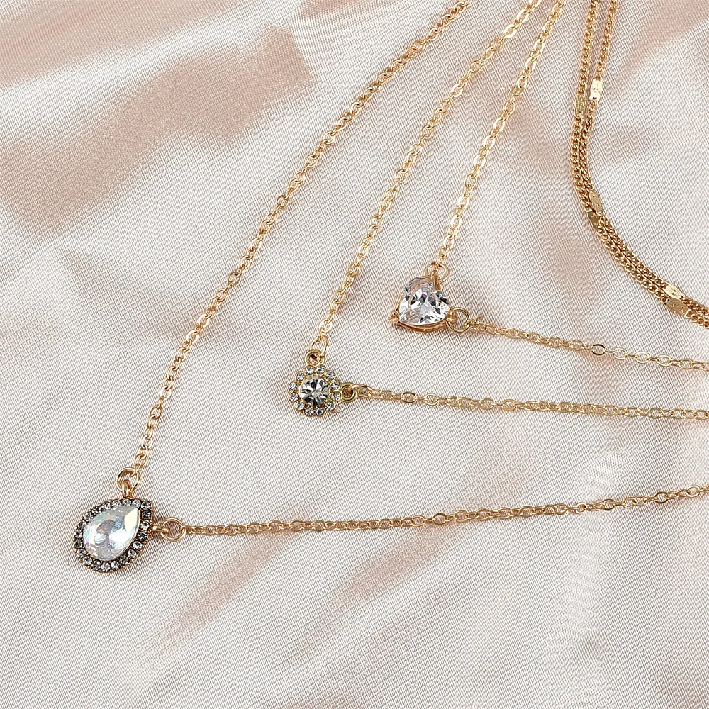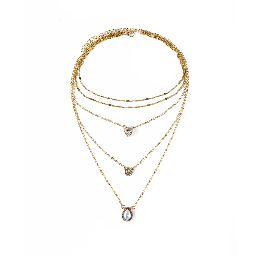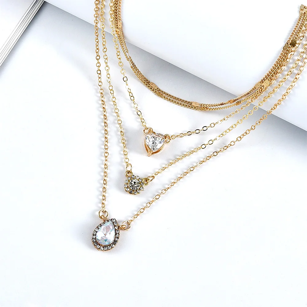Винтажные модные многоуровневые золотые ожерелья для женщин в форме сердца с кристаллами Капля воды цветок ожерелье с подвеской в стиле бохо ювелирные изделия подарок