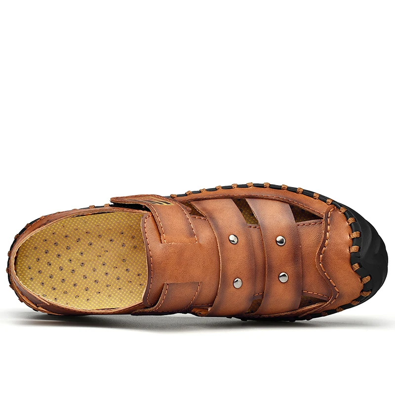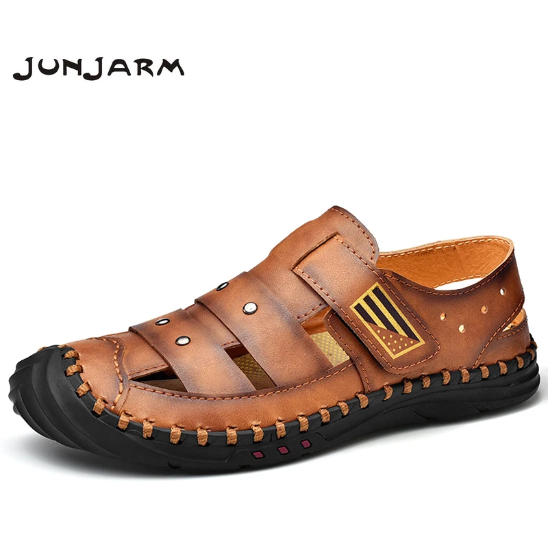 JUNJARMНовинка; Летние сандалии; Мужская повседневная обувь из натуральной кожи; Мужские уличные пляжные сандалии; Открытая Мужская Летняя обувь; 38-48