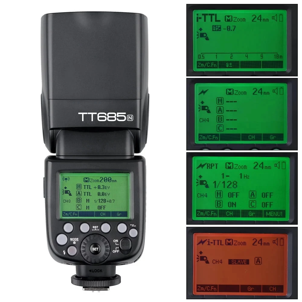 С полной поддержкой Nikon i-TTL, включая высокоскоростную синхроницию, и встроенную радиосистему 2,4 ГГц, вспышка Godox TT685N Thinklite TTL позволяет легко создавать простые и продуманные Осветительные устройства. Когда он установлен на камере, это эффективный инструмент для освещения с мощным направляющим числом 197 'на расстоянии 100 и 200 мм, с зумом 20-200 мм, И возможность наклона от-7 до 90 ° и поворота на 360 °. TT685N, как устройство, способное использовать TTL, также может работать как полный беспроводной основной или подчиненный блок с функцией TTL. Управление сопрягается с задней ЖК-панелью, которая показывает настройки. Кроме того, Вспышка оснащена беспроводным портом управления для подключения опционального пульта дистанционного управления, а также имеет порт синхронизации 3,5 мм для основного проводного подключения. Он работает на четырех батарейках AA, которые помогают обеспечить время рециркуляции 0,1-2,6 секунд.
