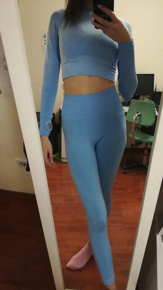 Такие костюмы в инст-магазинах стоят от 3000! Доставка. Пришло за 3 недели с момента заказа в Новосибирск в пункт выдачи dpd. Костюм долго не отправляли, фактическое время около 2х недель. Размер. У меня рост 169, параметры 85-65-92. Топ сел идеально (под грудью 76). Леггинсы сели на 4 - в талии оказались слишком большими, возможно унесу в ателье, но пока мне это не мешает. Я увидела эту проблему у других в отзыве, поэтому была готова. Качество. Ткань отличная, в меру утягивает, то что нужно для занятий спортом Эксплуатация. Костюм отлично выдерживает приседы, растяжку и прочие веселья, на нем не видно пятен пота Вердикт - берём, не задумываясь!