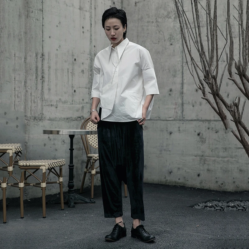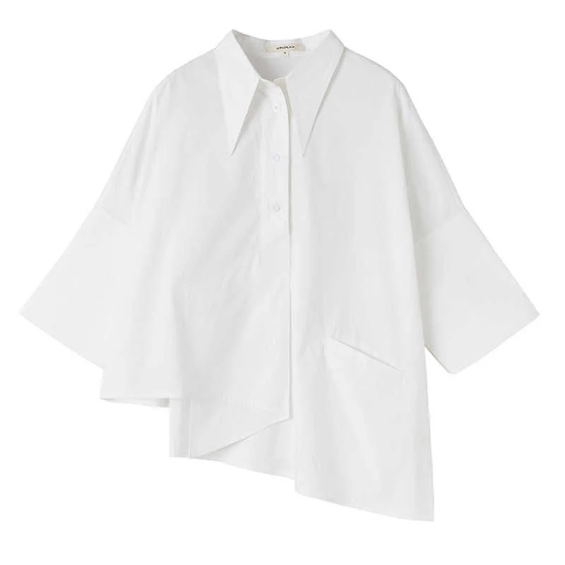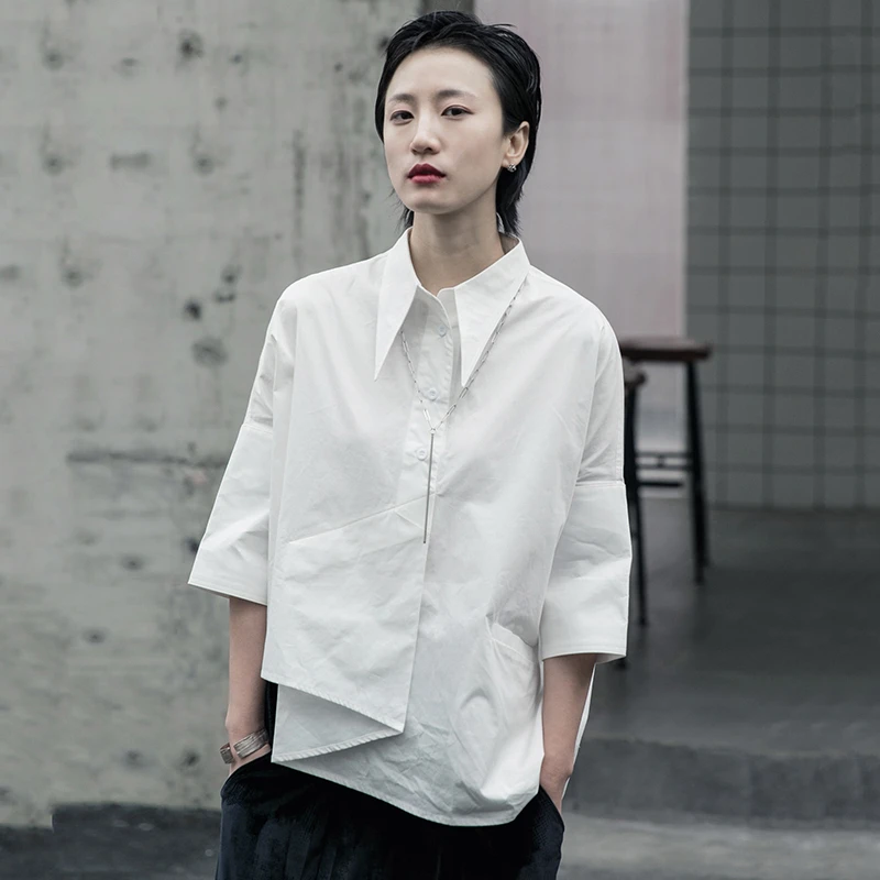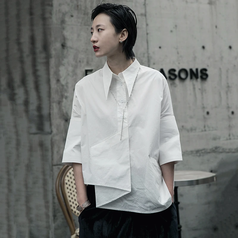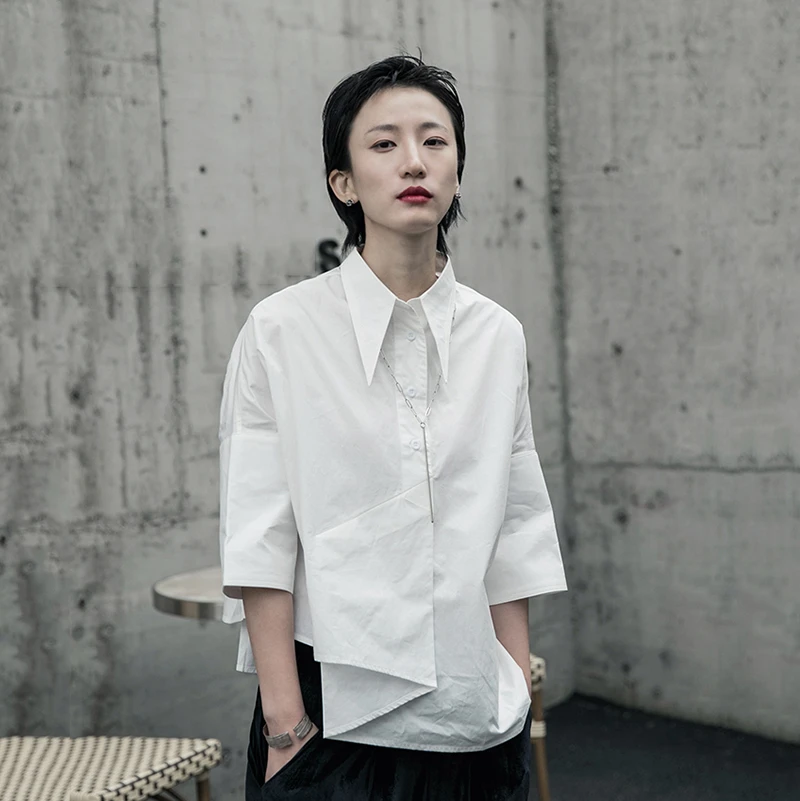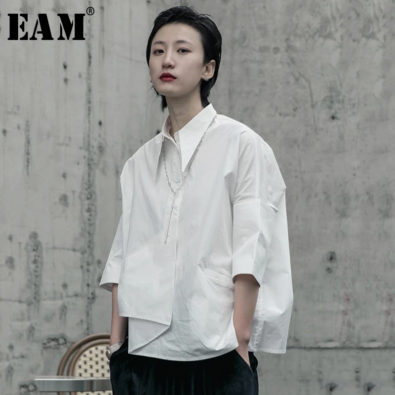 EAM Женская белая Асимметричная блузка большого размера, новая свободная рубашка с длинными рукавами и отворотом, модная весенне-осенняя 2022 1R590