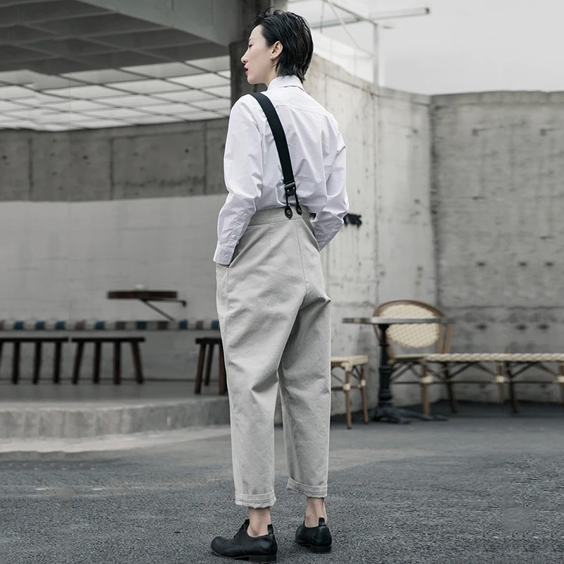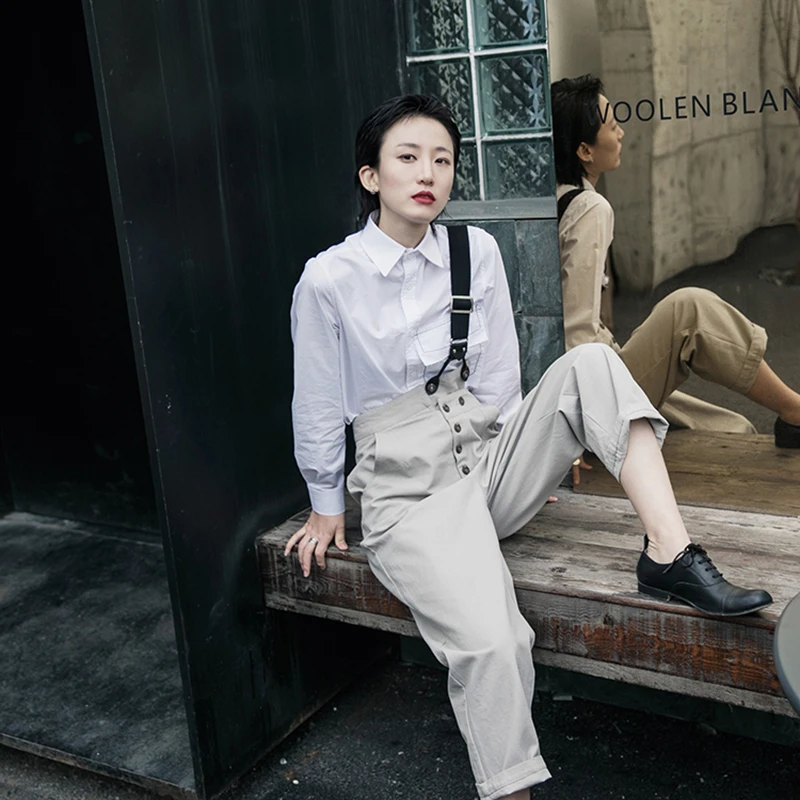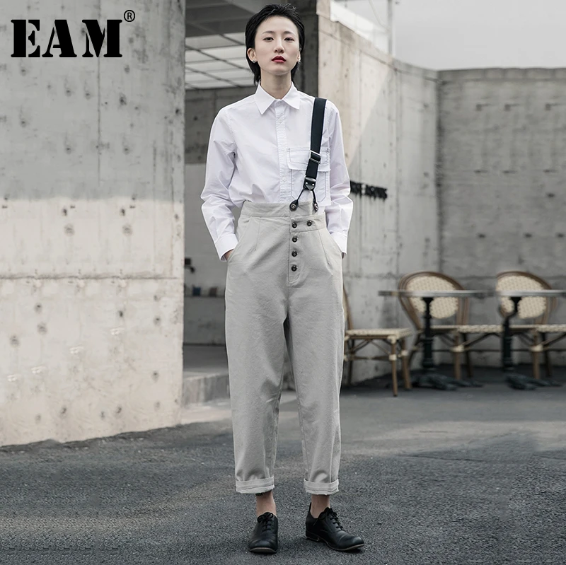 EAM брюки для отдыха с завышенной талией, пуговицами и разрезом, комбинезоны, новые свободные брюки, женские модные демисезонные 2022, 1R5860