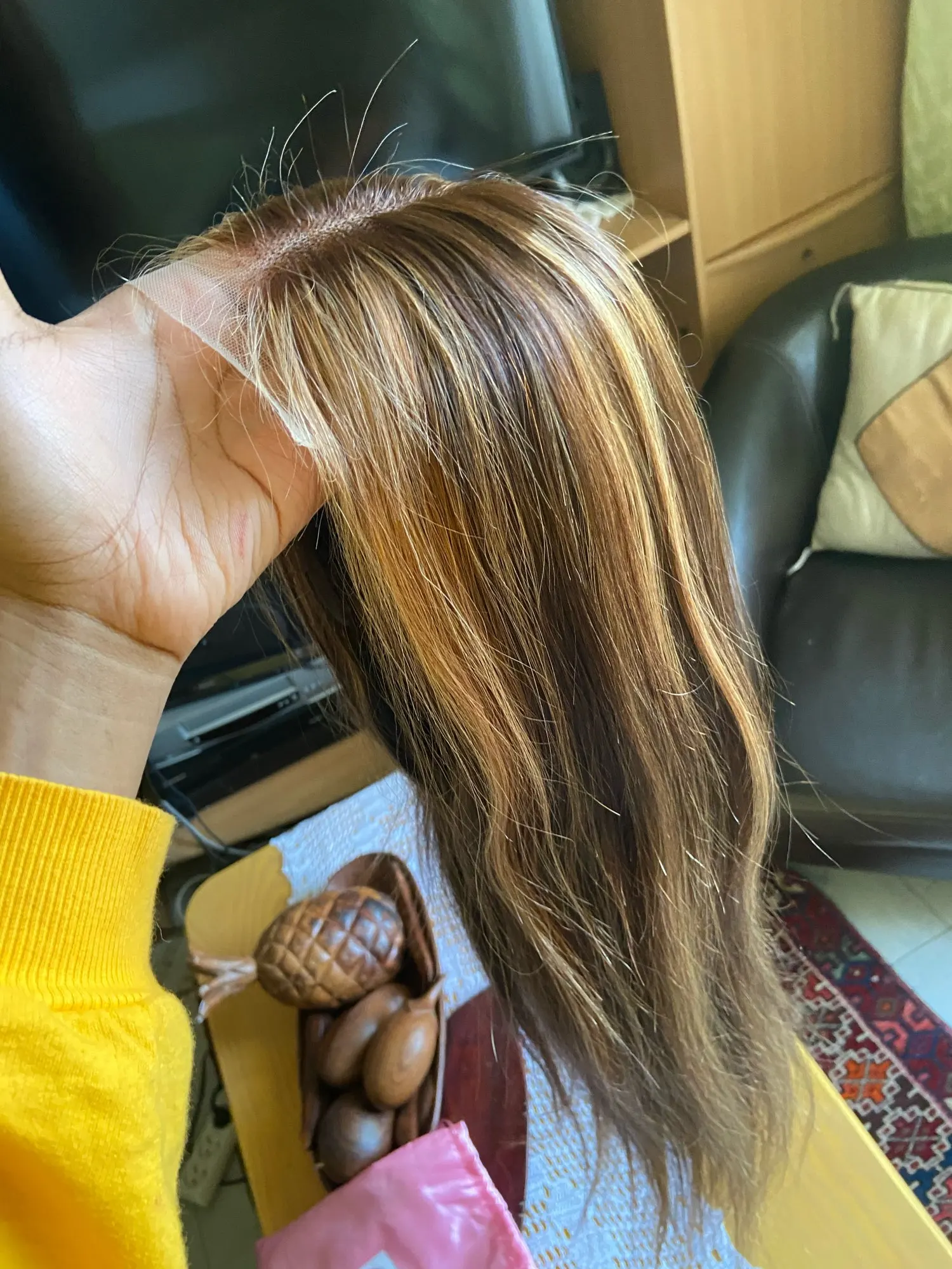 Страна: FR Color: Highlights 27 Density: 180 Density 4x4 Wig Stretched Length: 18inches Доставка: Fedex IP 04.03.2021