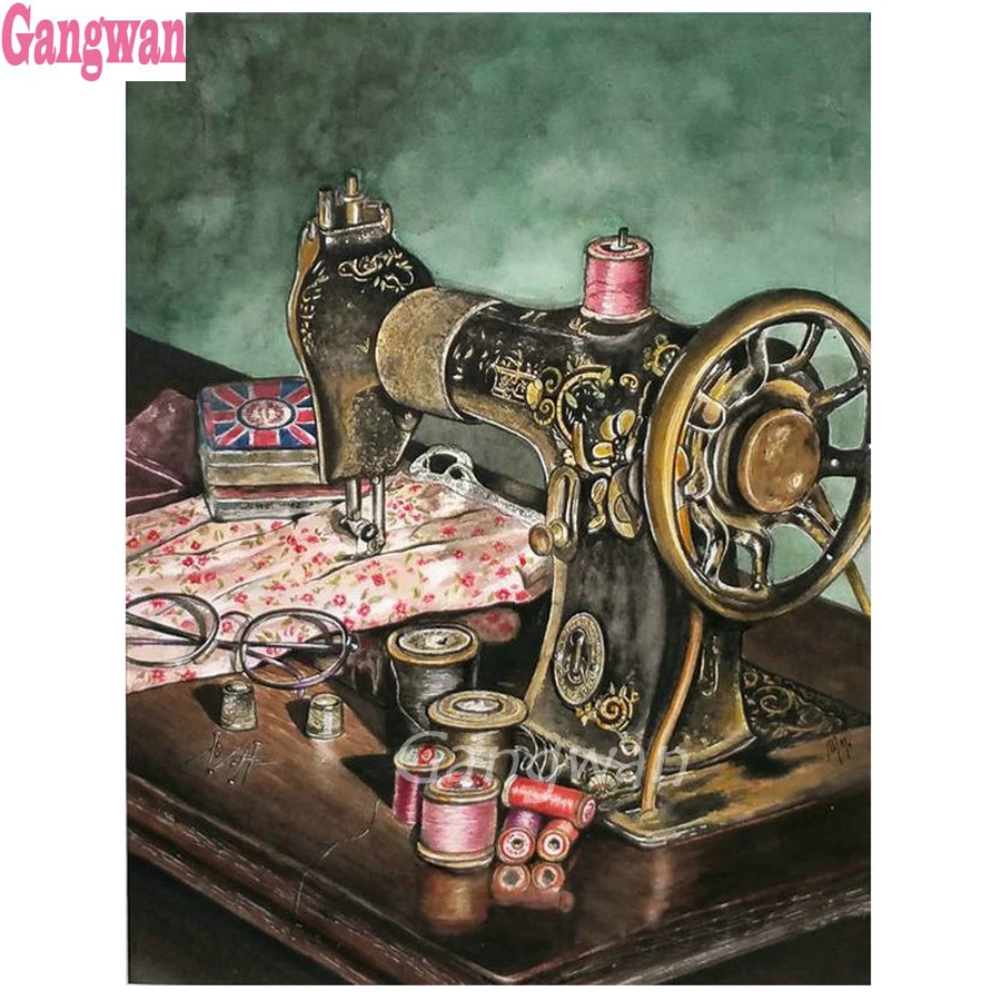 5d сделай сам, ретро-швейная машина, шаблон, полная квадратная круглая вышивка, алмазная живопись, мозаика, вышивка алмазами, вышивка крестиком, домашний декор