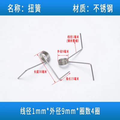 5 шт. диаметр проволоки 1 мм наружный диаметр 9 мм количество витков 4 кольца длинная пружина кручения из нержавеющей стали 30 мм/15 мм Угловая длина