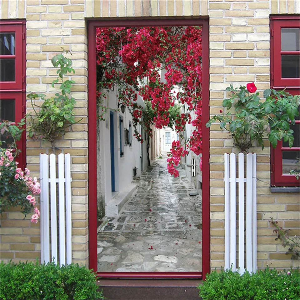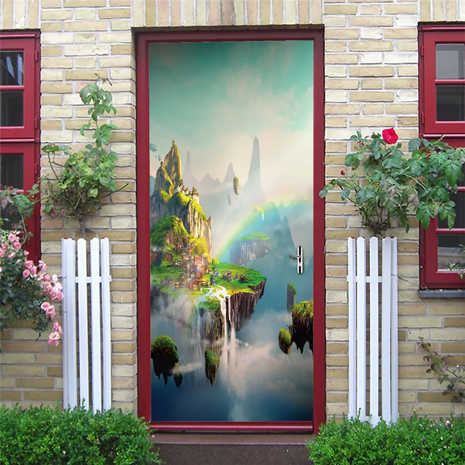 Клейкие виниловые обои для различных дверей, водостойкая наклейка с пейзажем