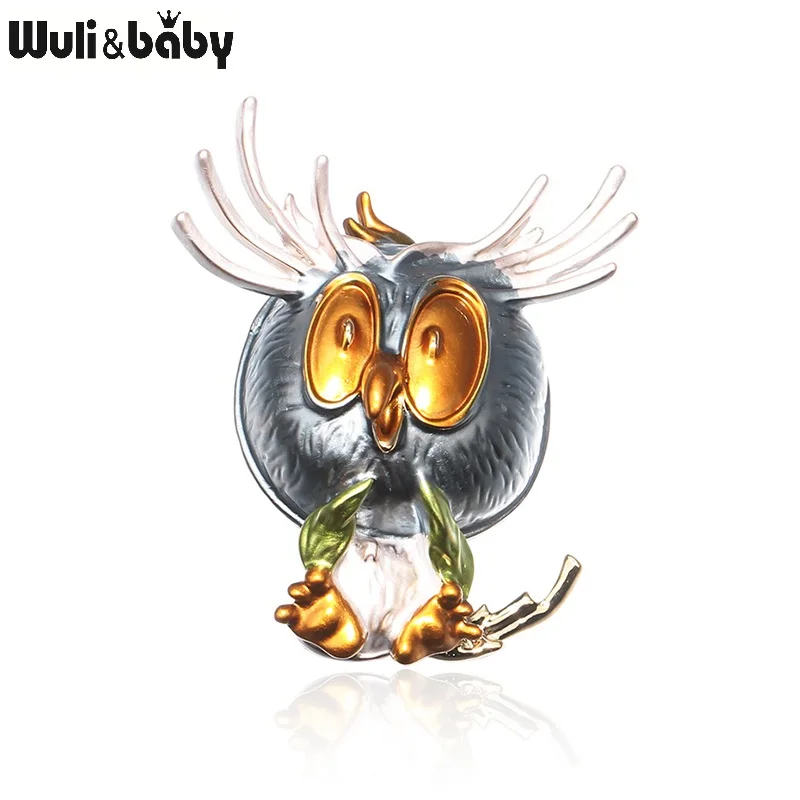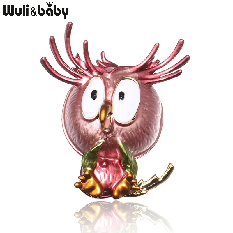 Wuli baby, милая сова, 3 цвета, эмаль, броши с птицами, Женская Брошь из сплава, коричневая, серая, розовая птица, животное для вечерние, повседневная брошь, булавки, подарки