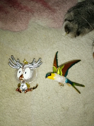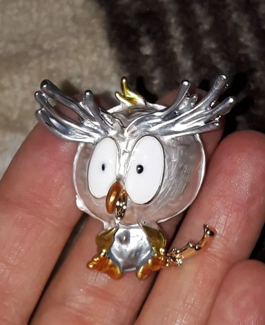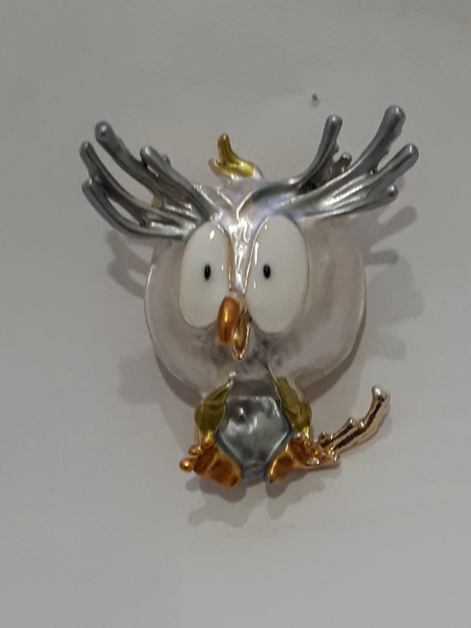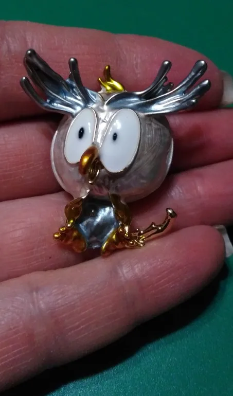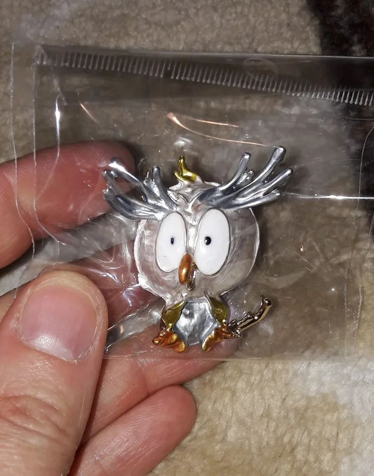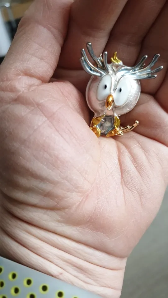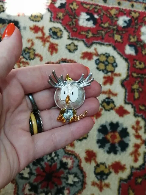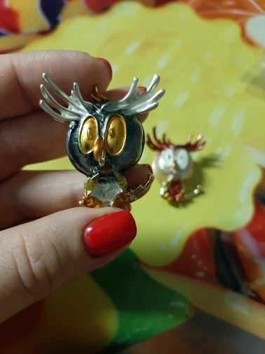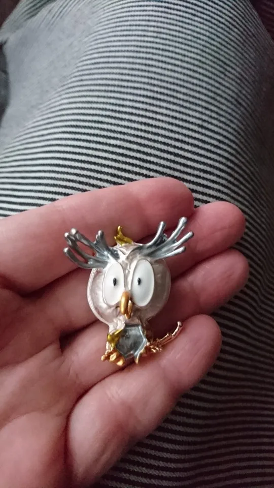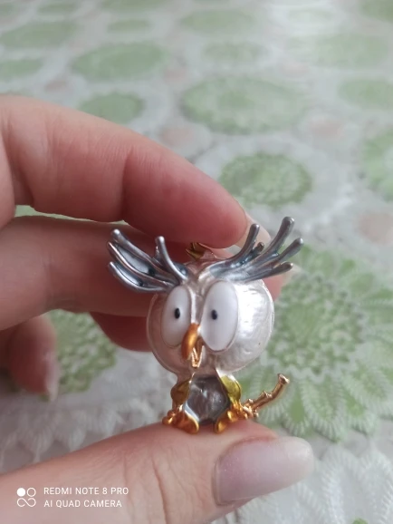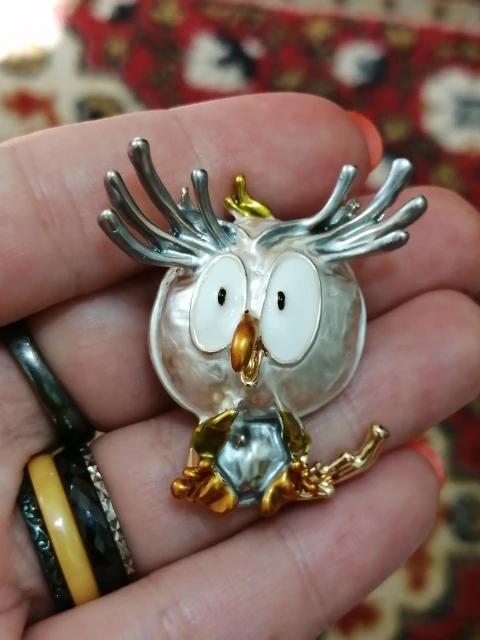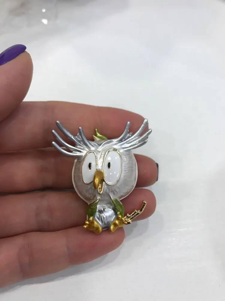 Совушка очень нежненькая. Застёжка булавочка и можно носить как кулон- есть петелька для этого. Эмаль качественно нанесена. Мне понравились все брошки. Они качественные, блестючие. Продавца рекомендую. Не могла удержаться, набрала кучу Описание точное, с продавцом не общались. Посылка пришла с набором других брошек. Шла долго, но думаю, это из-за пандемии+ перед Новым годом. Спасибо