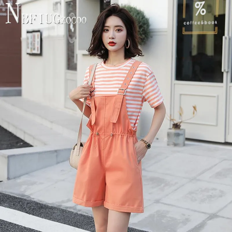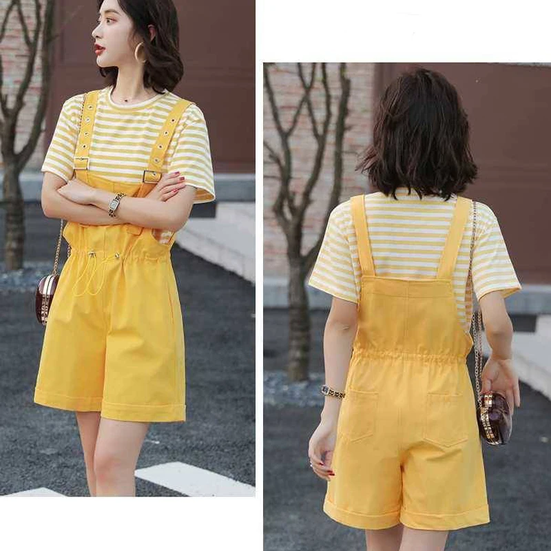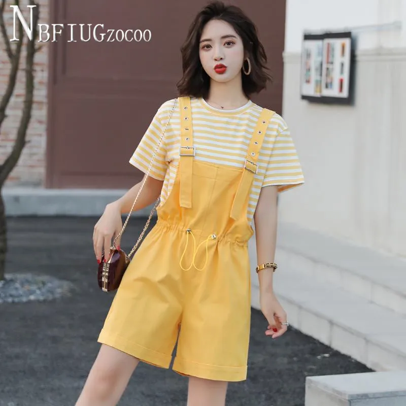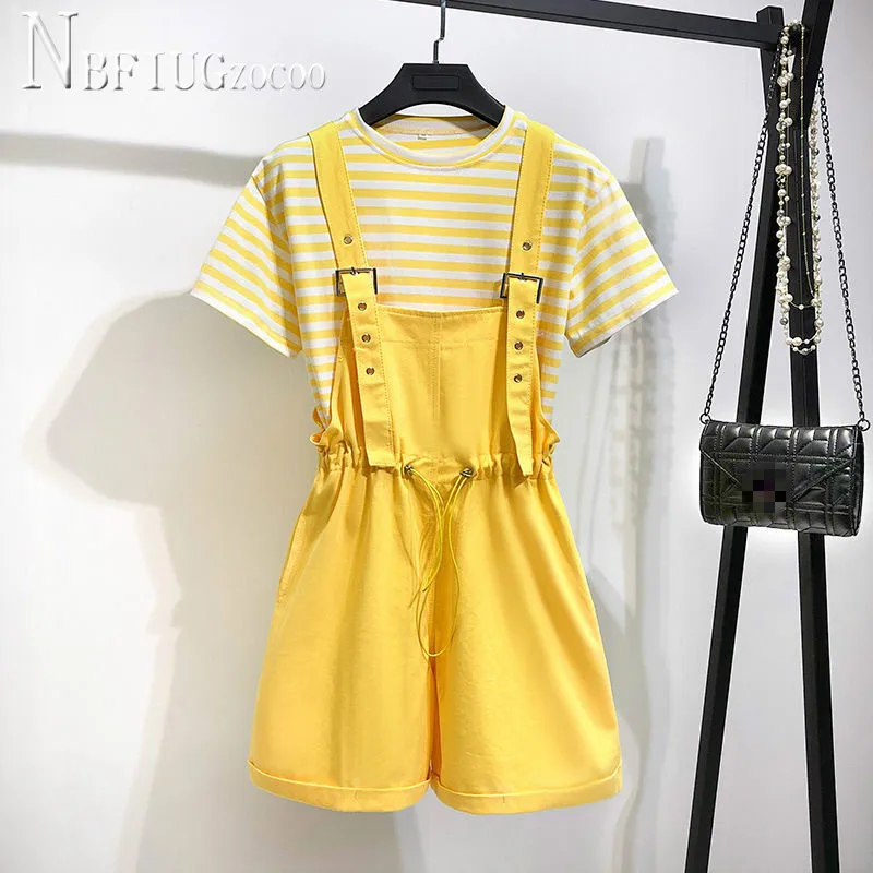 Новинка лета 2020, женские комплекты, футболка в полоску и комбинезон, женские комплекты