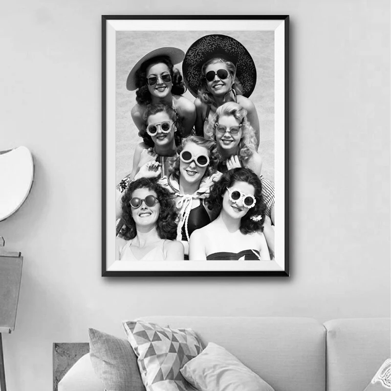 Красивые женские фото постер Винтаж друзья пляжные солнцезащитные очки принты антикварная картина холст мусор журнал измененный настенный художественный Декор
