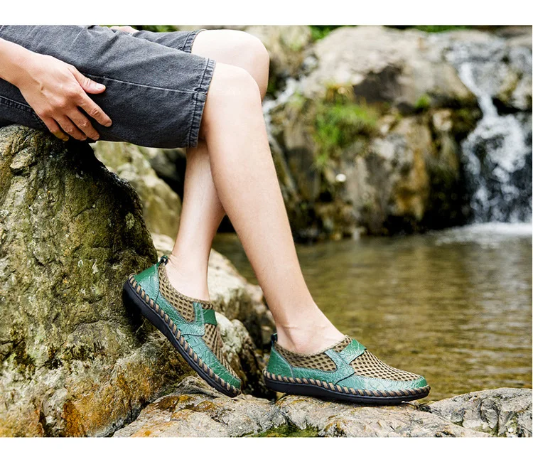 Повседневная обувь; Обувь в горошек; Обувь без застежки; Мужская обувь; Дышащая обувьКожаная повседневная обувь мужская обувь больших размеров летняя обувь из сетчатого материала без застежки
