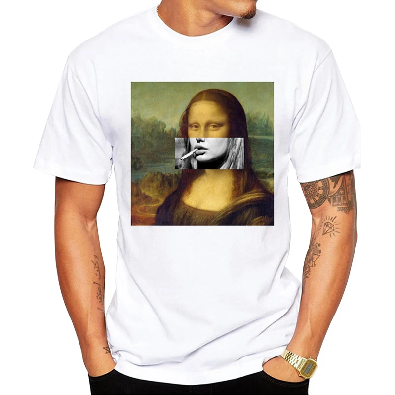 Мужская футболка TEEHUB с коротким рукавом, повседневная хипстерская рубашка с принтом Моны Лизы, Свитера с забавным принтом для курения, Моны Лизы, лето