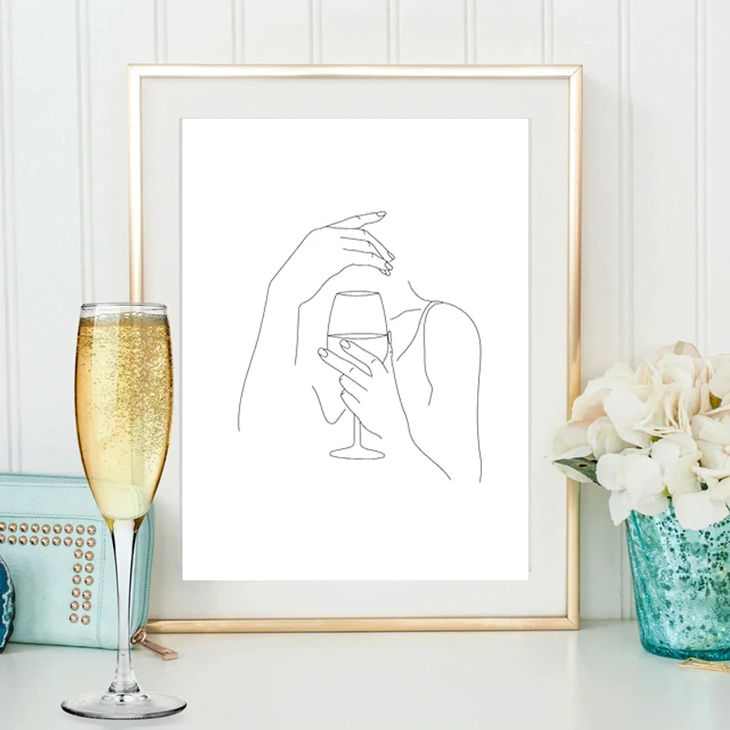 Винная женщина, рисунок по линии рук, Художественная печать, Женский художественный плакат для виски, винтажная Картина на холсте для коктейлей, подарок для любителей виски и вина