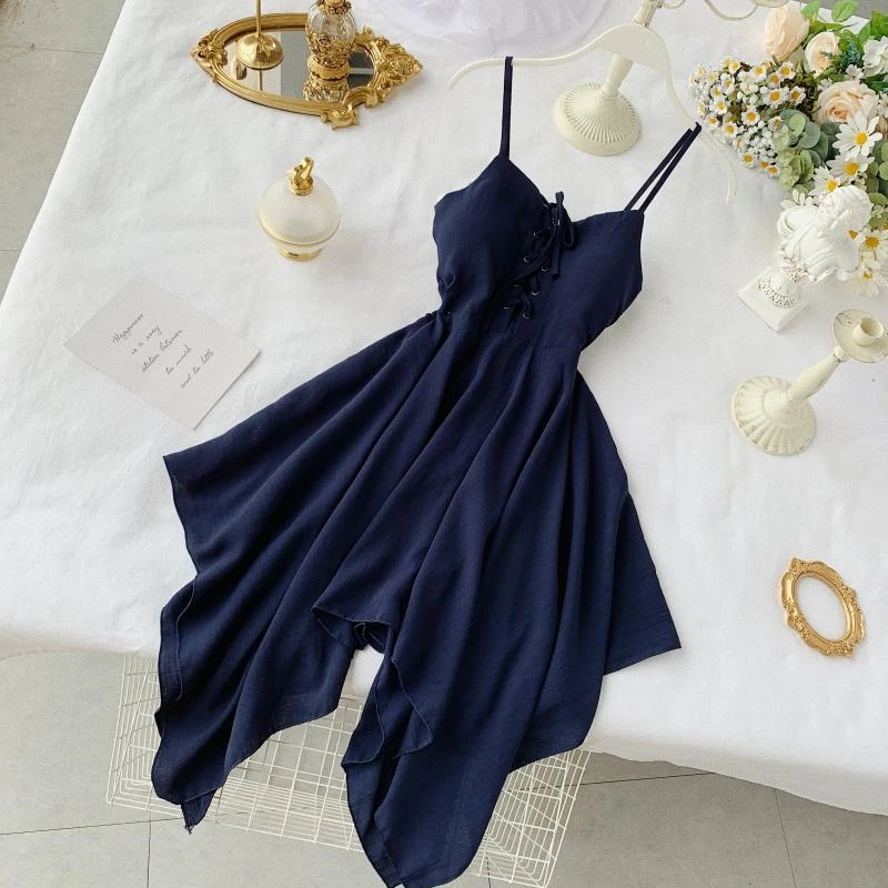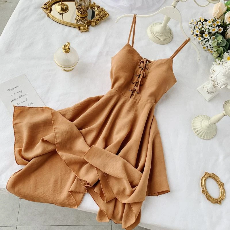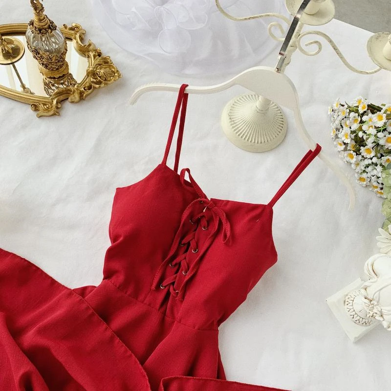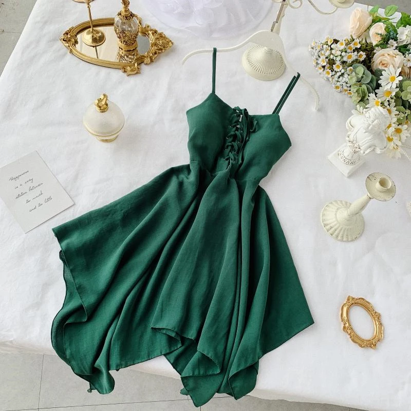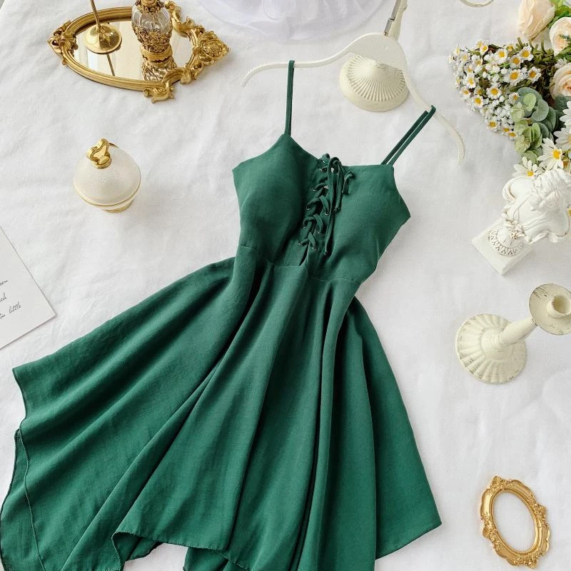 Женское мини-платье с асимметричным подолом, красноезеленое платье на бретелях, без рукавов, с высокой талией, лето 2020
