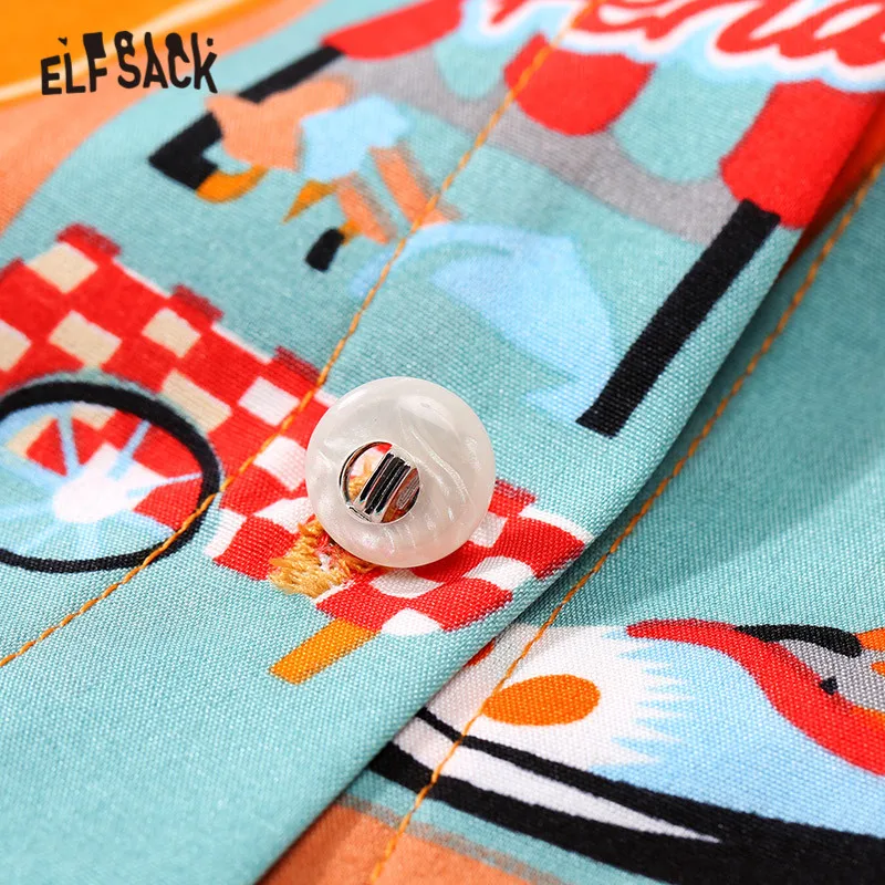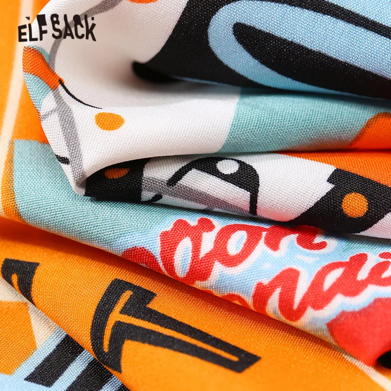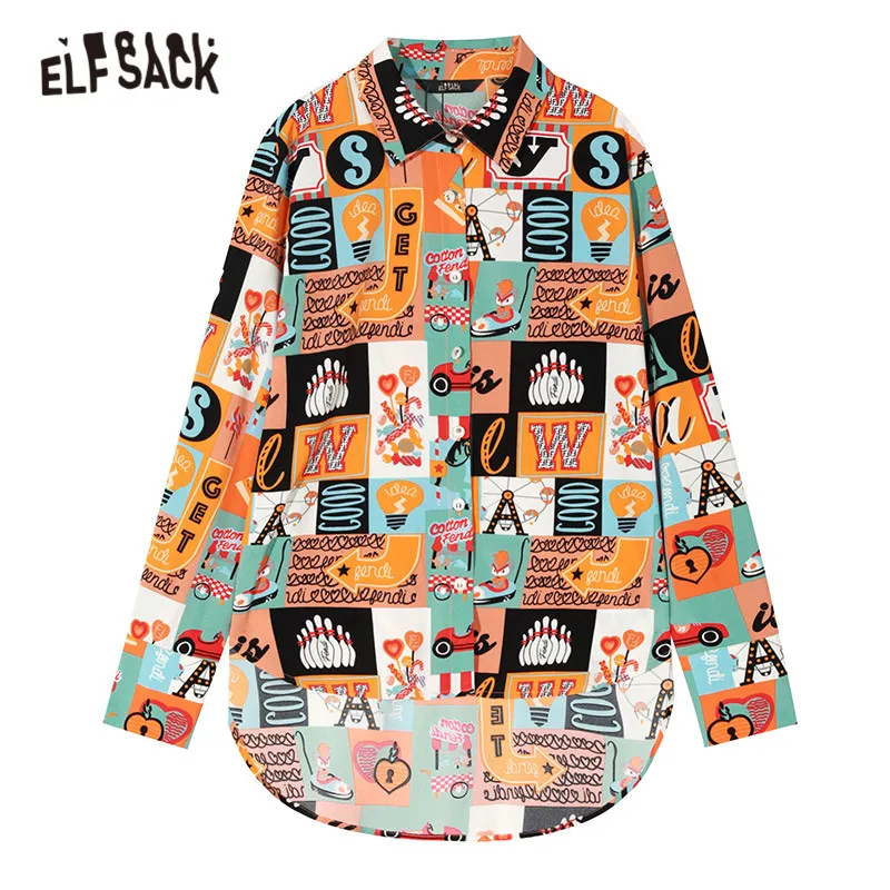 Женская винтажная блузка ELFSACK, белая Повседневная Блузка с разноцветным графическим принтом, с длинным рукавом, корейский стиль, топы на каждый день, весна 2020