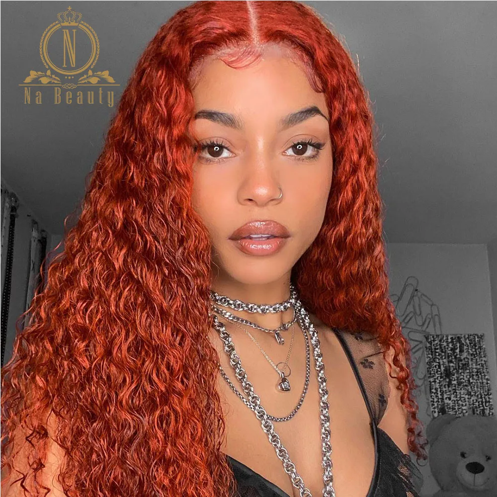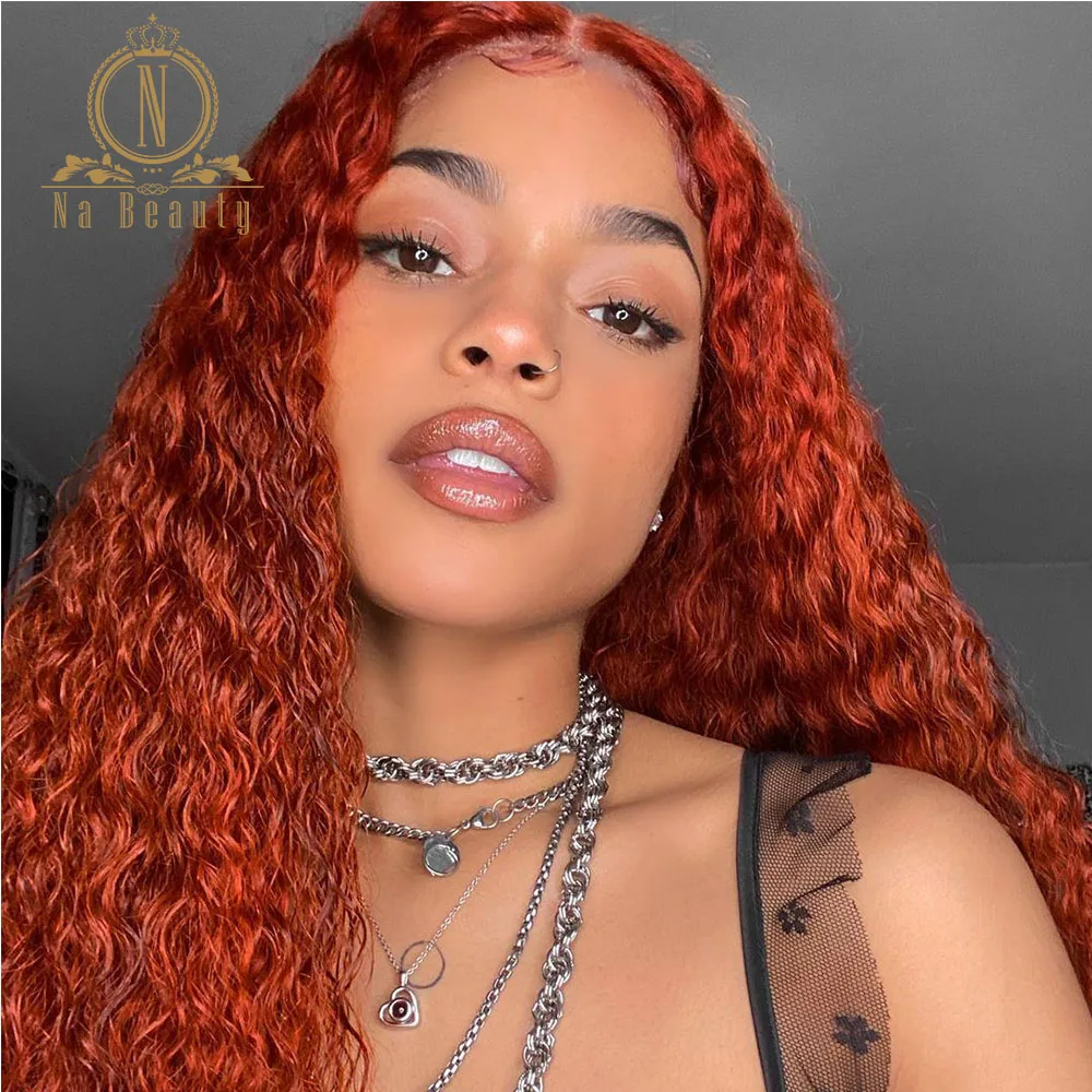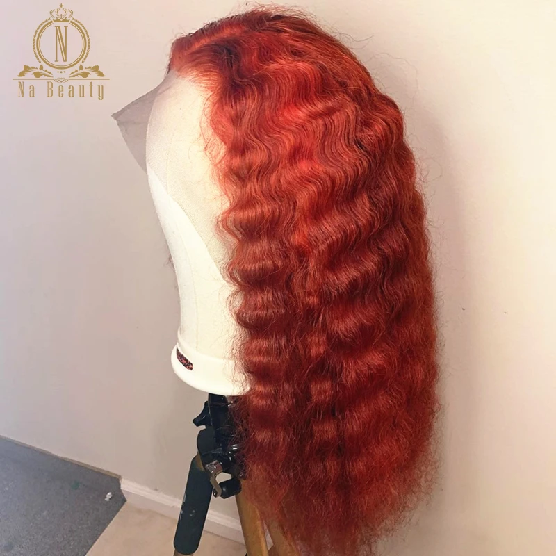 Парик из человеческих волос оранжевого и красного цвета, парики на шнуровке спереди 360, парик на шнуровке спереди, бразильский, с глубокой волной, предварительно выщипанный, Na beauty, плотность 150, Remy