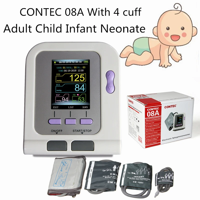 Сфигмоманометр CONTEC08A с 4 манжетами, CE, цифровой монитор артериального давления, цветной ЖК-дисплей, для взрослых, детей, новорожденных