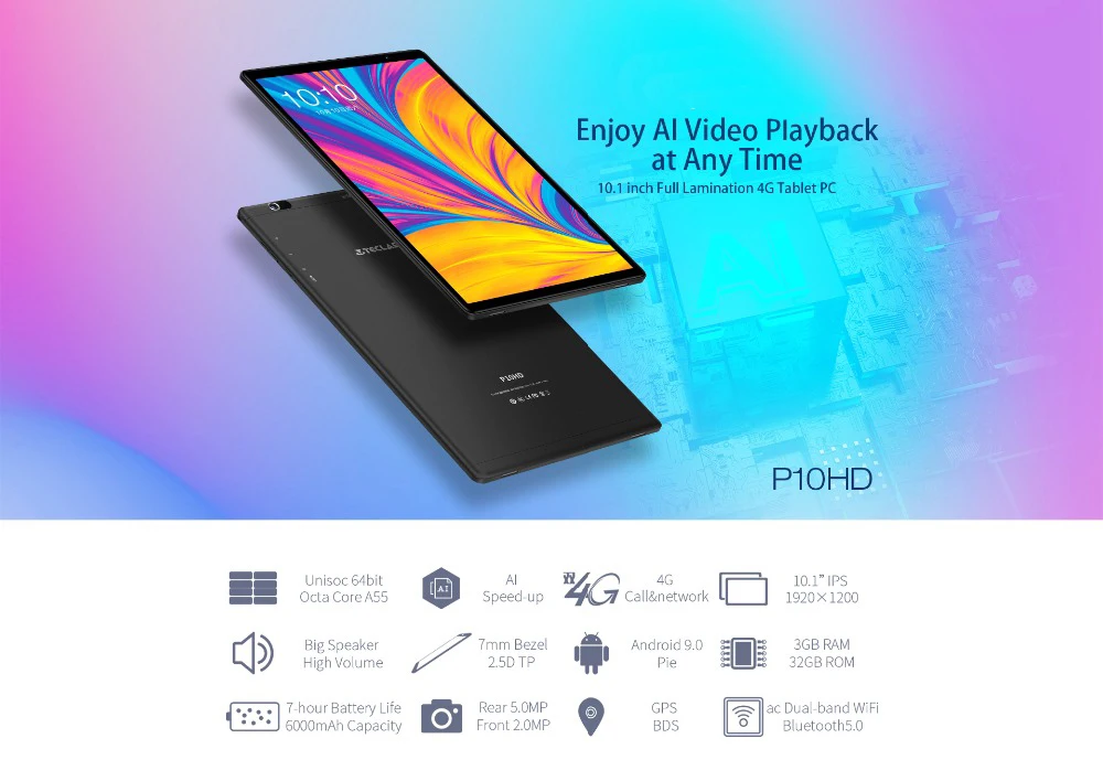 Teclast P10HD планшет, Восьмиядерный, экран 10,1 дюймов, 3 Гб ОЗУ 32 Гб ПЗУ