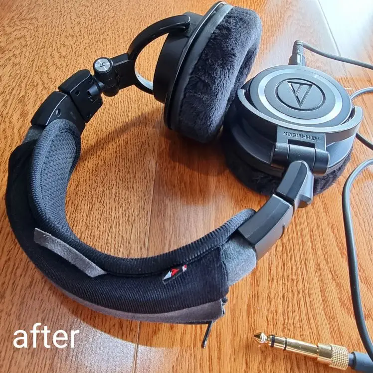 Отлично смотрится на моем ATH M50X без морщин или складок, рекомендуется.