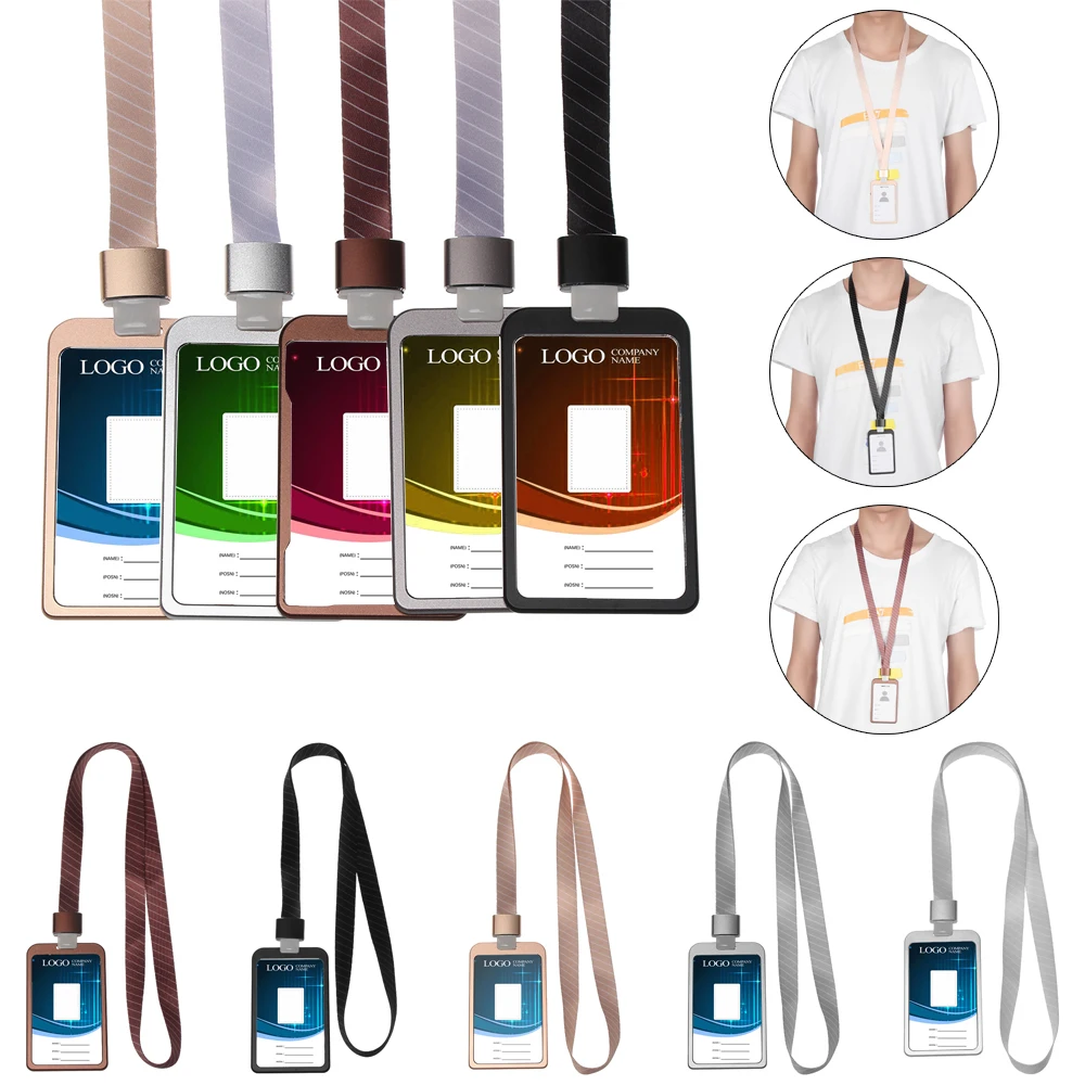 Алюминиевый сплав ID значок держатель для карт бизнес безопасности пропуска тег держатель с шнурком работы автобуса держатель для карт офисные товары компании
