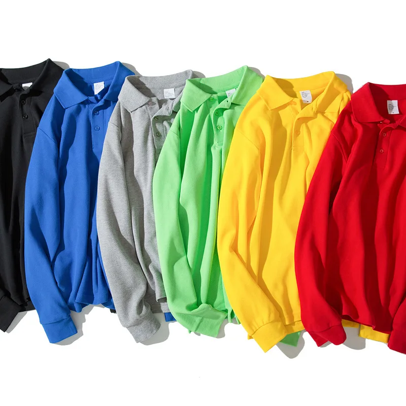 Мужское поло из 100% хлопка, весенне-осенние однотонные повседневные рубашки-поло с длинным рукавом, размеры S-3XL;YA286