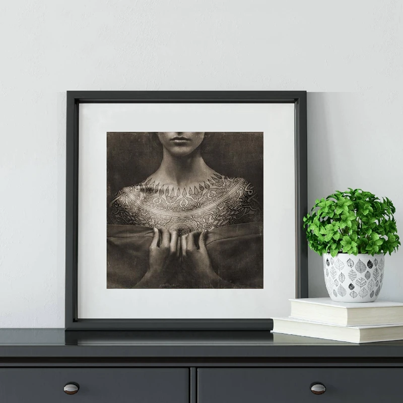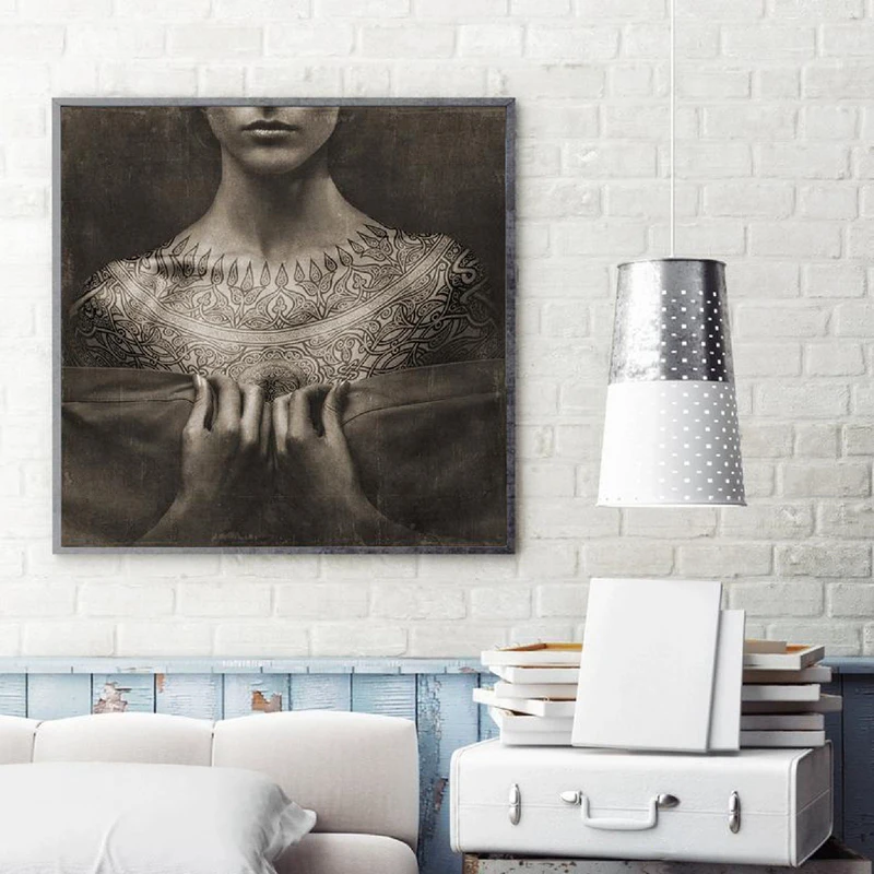 Темный портрет, тату, принты, Женский портрет, сепия, фото, темный плакат в стиле бохо, темный Муди, нейтральная настенная живопись, холст, домашний декор
