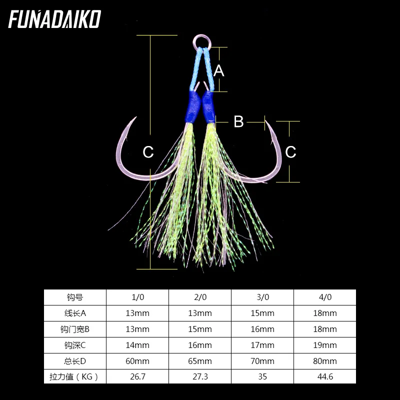 Новый рыболовный вспомогательный крючок FUNADAIKO для морской ловли, медленно зажимающийся двойной крючок, светящиеся искусственные крючки для приманки 10 20 30 40