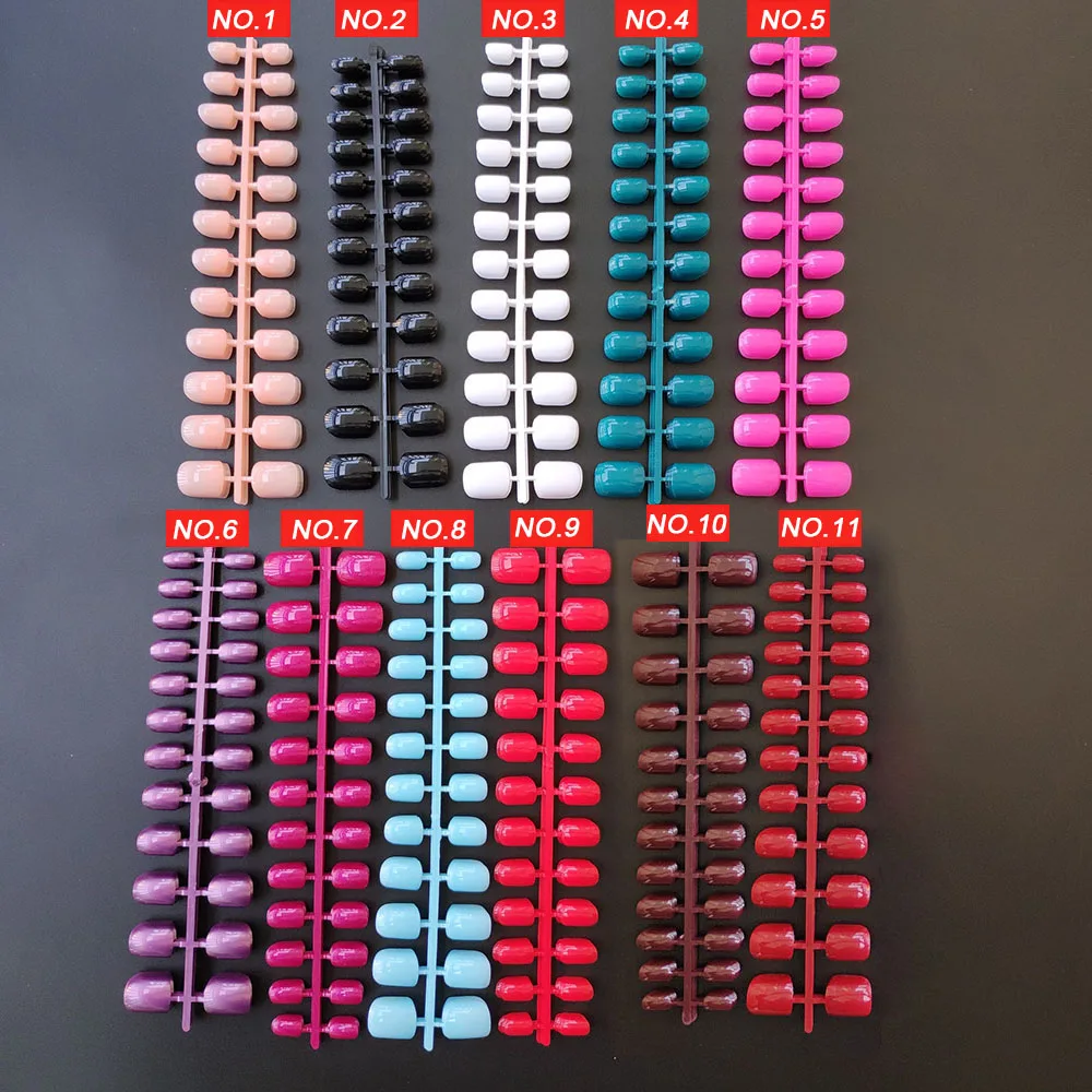 "NO.1 x 10 ~ NO.11 x10": 10 наборов одинакового цвета накладных ногтей. Без клейких лент для ногтей.
