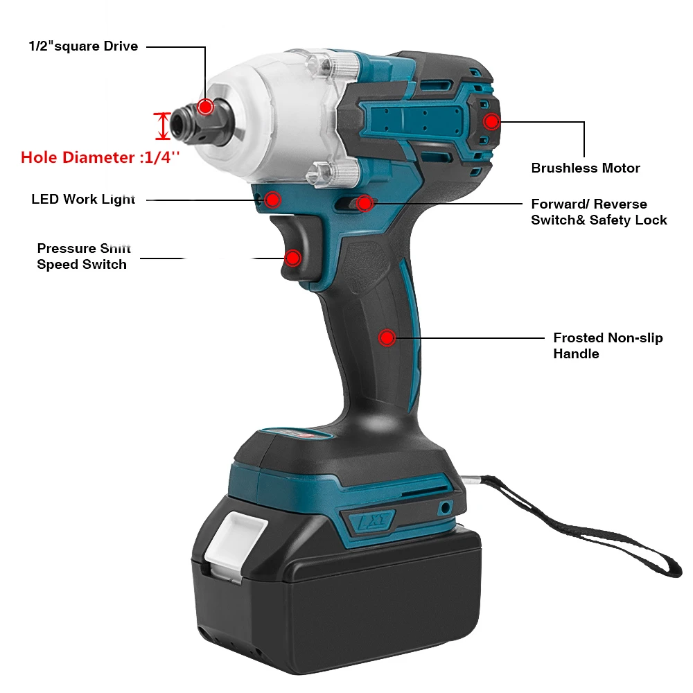 Литий-ионные аккумуляторы. Совместим с литий-ионным аккумулятором Makita 18 в (только для корпуса) для DTW285 DTW250 DTW180 DTW251 DTW284 DTW190 DTW181.