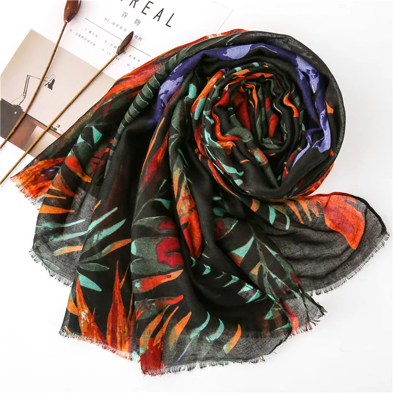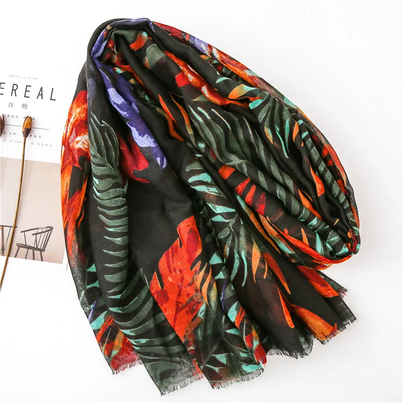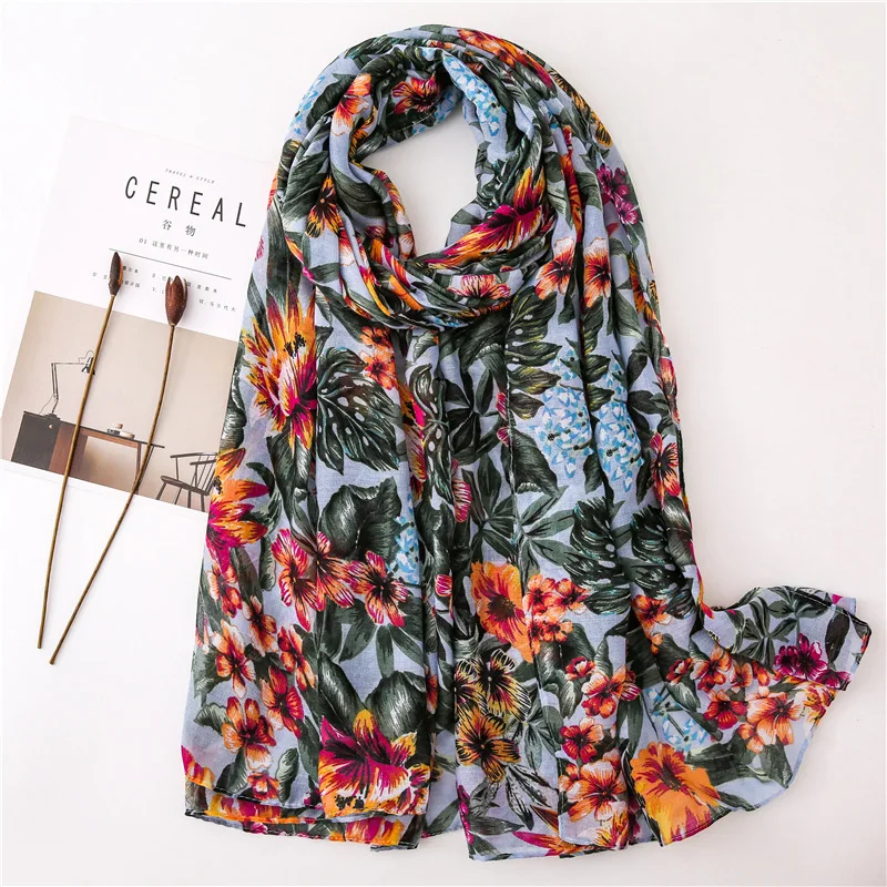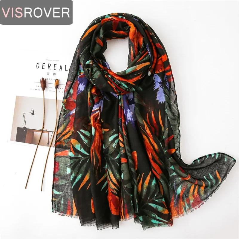 Visrover летние пляжные шарфы, шаль с растительным принтом листьев, шарф из вискозы, цветочный хиджаб, женские шарфы, модные на лето, оптовая продажа