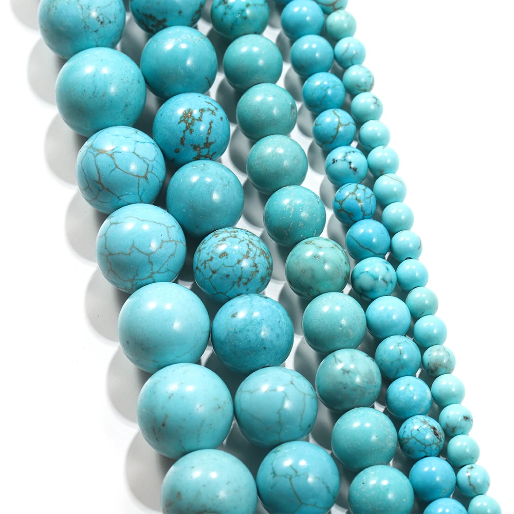 1strand/лот 4/6/8/10 мм синий Бирюза Камень Круглые бусины для самостоятельного изготовления браслетов ювелирные изделия, оптовые поставки