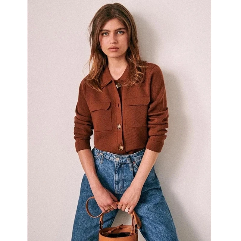 Женские куртки, вязаные шерстяные кардиганы, Дамская рубашка с отложным воротником, карамельный женский кардиган, женская одежда, топы для девочек, свитер
