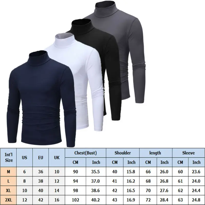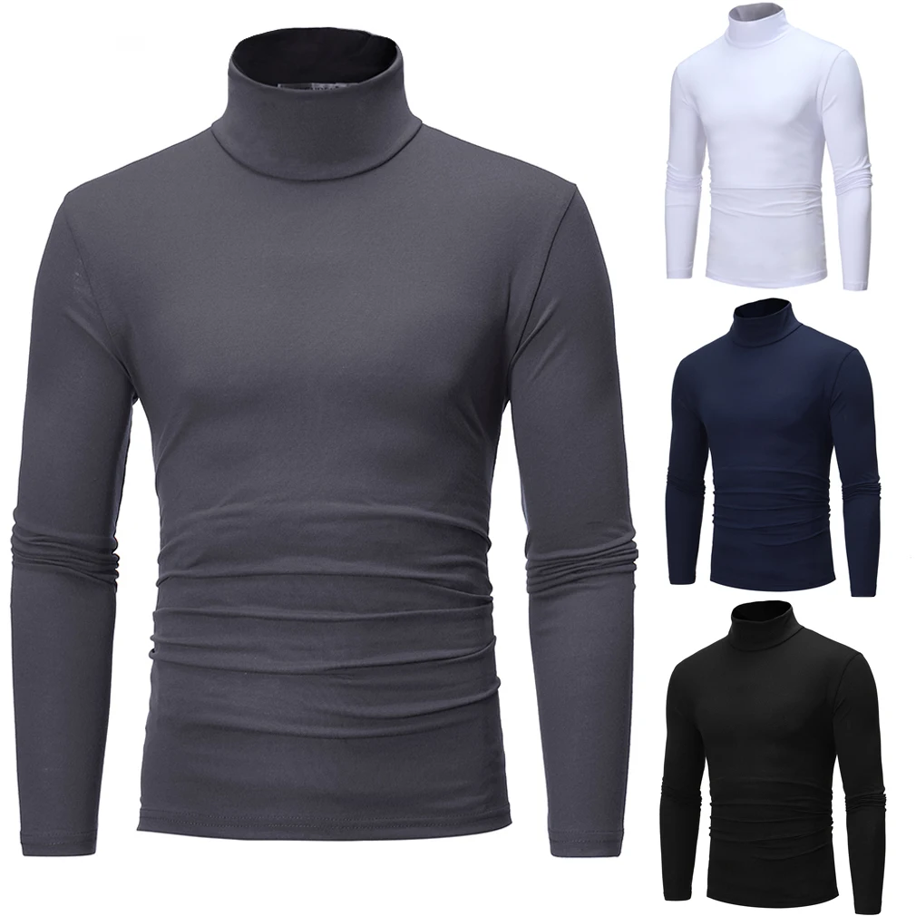 Мужская хлопковая водолазка Meihuida с длинным рукавом и высоким воротом, эластичная облегающая Базовая футболка, мужские рулонные пуловеры с высоким воротом, вязаный свитер