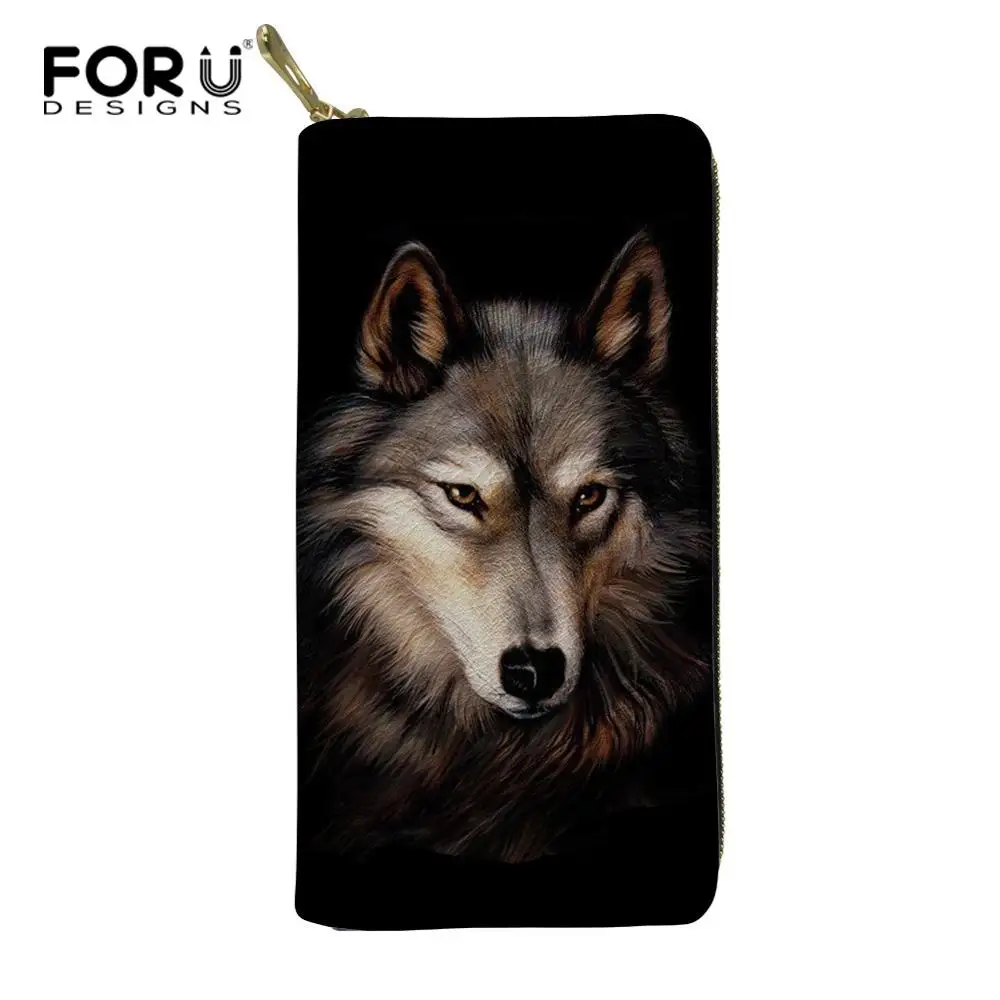 FORUDESIGNS, кожаные кошельки с принтом волка для женщин, длинный женский клатч, сумочка, кошелек на молнии, женские держатели для кредитных карт