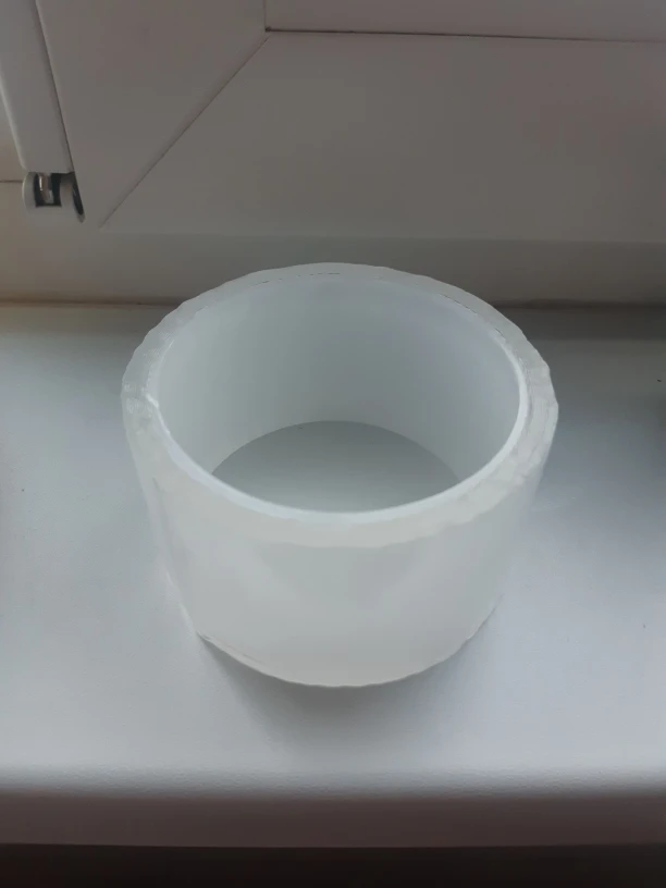Очень толстый скоч. Позволяет переклеивать , если сразу криво встал.