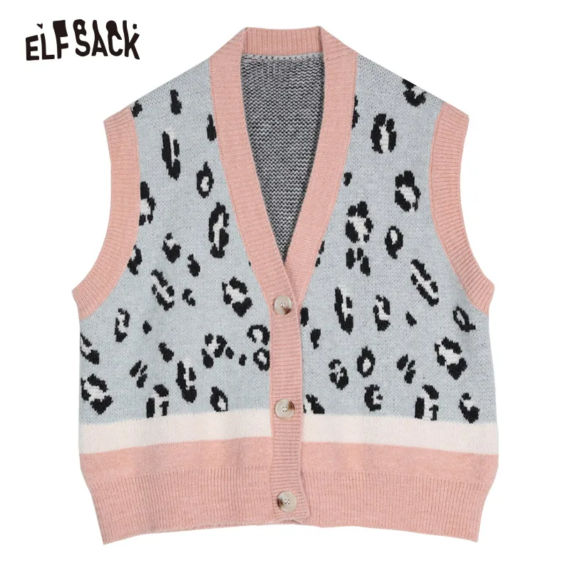 Женский леопардовый кардиган ELFSACK, Розовый Повседневный Кардиган в Корейском стиле без рукавов с одной пуговицей, весна 2020