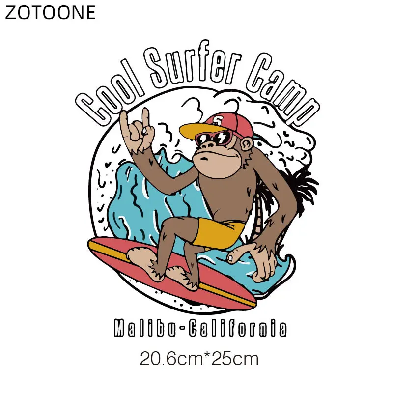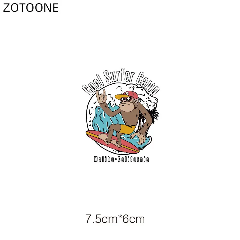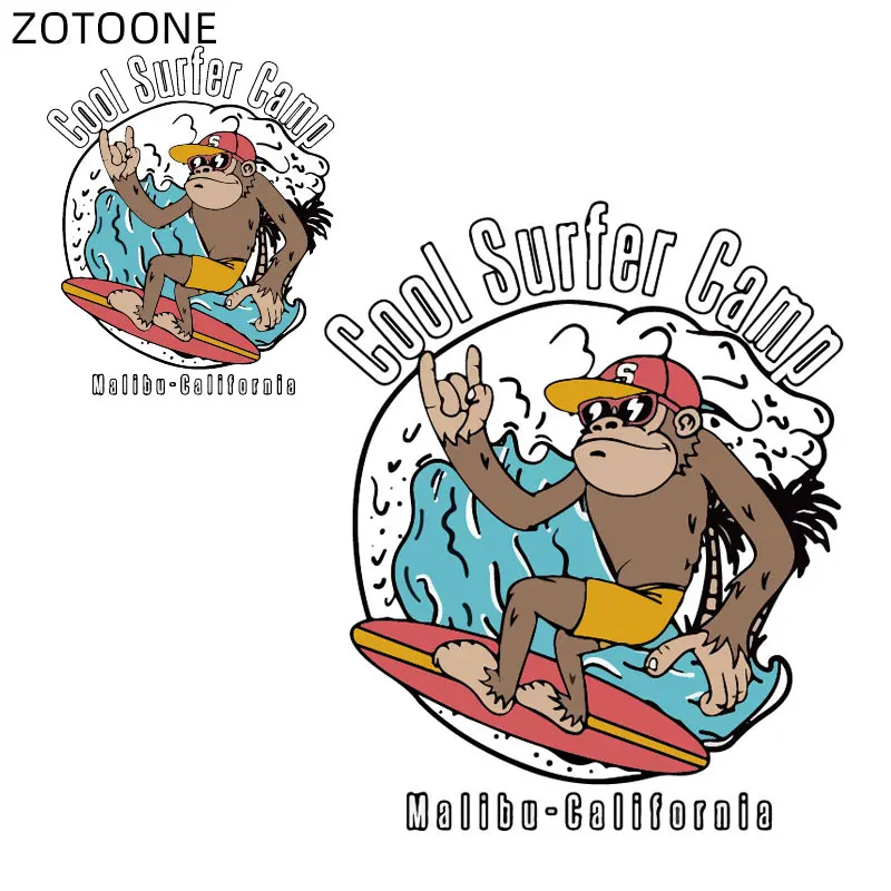 Нашивки ZOTOONE с принтом обезьяны для серфинга, термотрансферные нашивки для одежды, наклейки с мультяшными животными, термоаппликация H