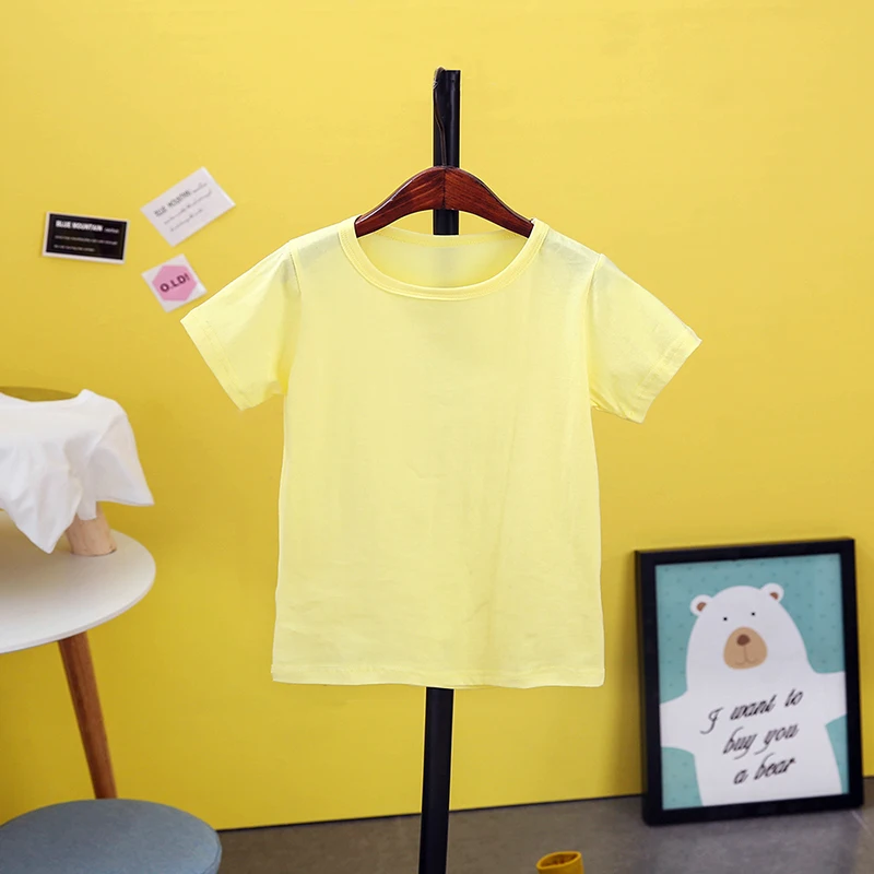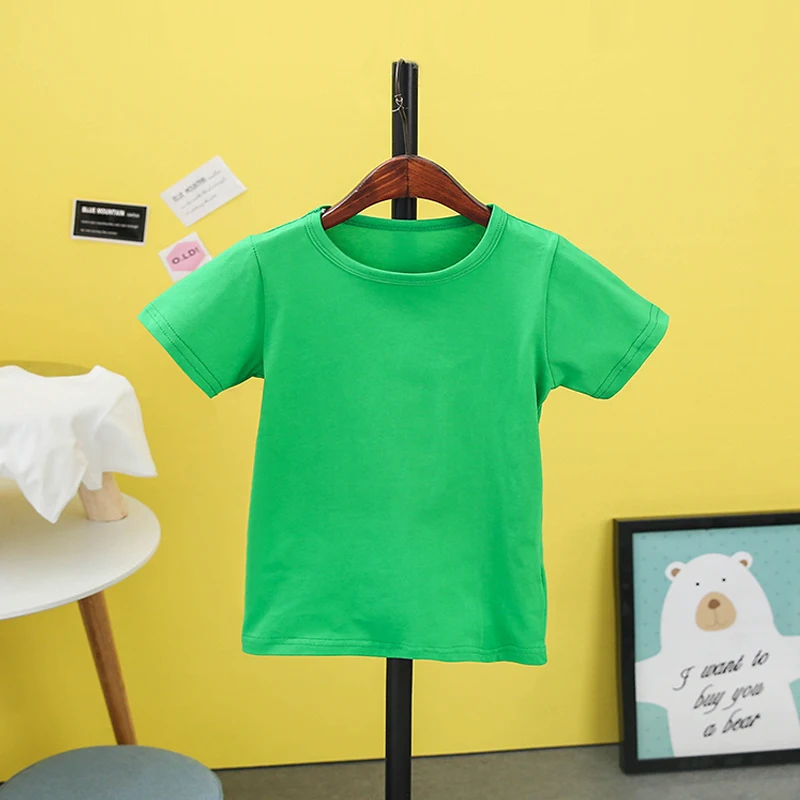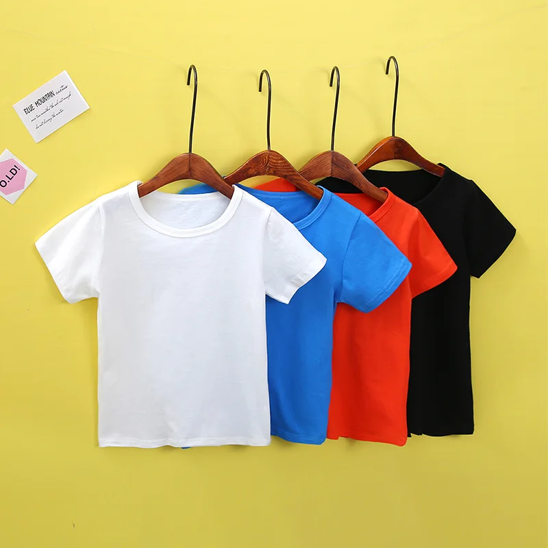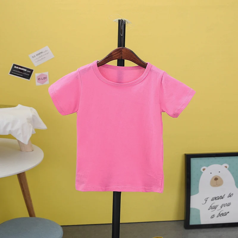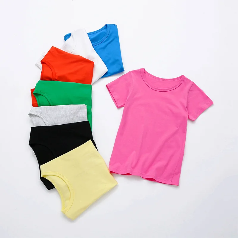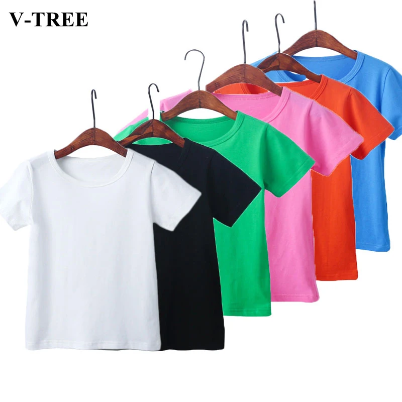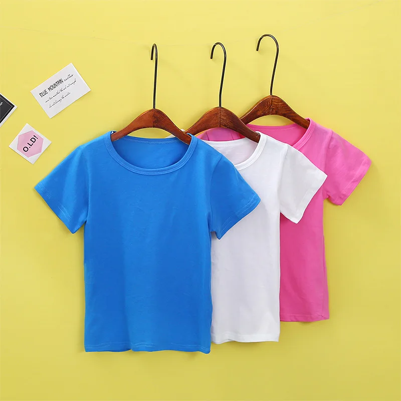 Летняя детская футболка 2018, однотонные рубашки для девочек, От 2 до 8 лет топы для мальчиков, хлопковые детские футболки, школьная верхняя одежда для малышей