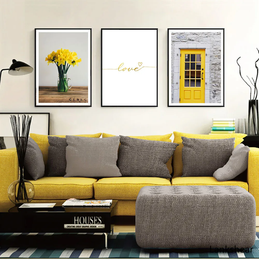 Пейзаж холст искусство пейзаж постер цветок картина в скандинавском стиле Гостиная Холст Картина Желтая стена искусство Цитата без рамки