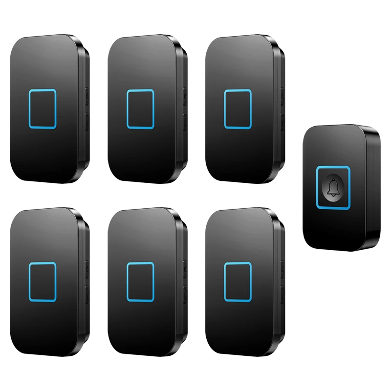 Беспроводной дверной звонок для дома, водонепроницаемый, 1 кнопка, 6 приемников, 300 м, пульт дистанционного управления, US, EU, UK, AU Plug, домашнее светодиодное освещение, дверной звонок