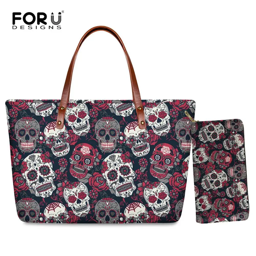 Комплект женских сумок FORUDESIGNS с цветочным принтом черепа, цветные женские тоуты, вместительные водонепроницаемые сумки с ручками сверху